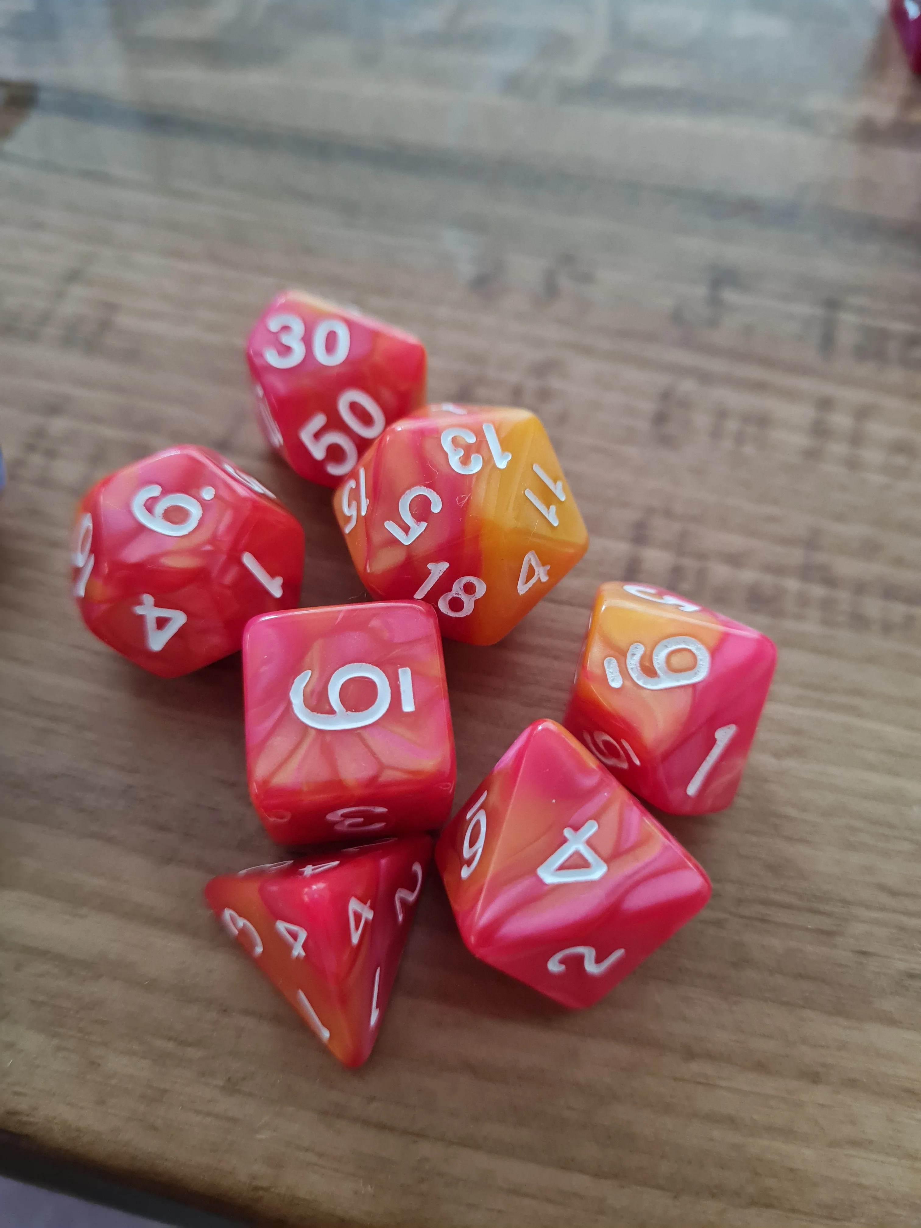 Доставка занимает всего две недели в Германию, это очень быстро! Кости хорошо сбалансированы, имеют приятный вес и до сих пор кажутся твердыми. Они тоже выглядят красиво, плюс вы получаете полный комплект за очень небольшие деньги. Что вам не нравится?