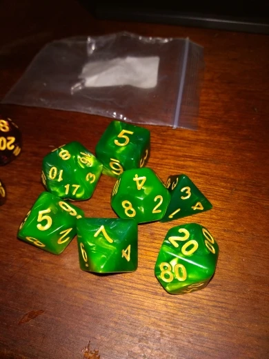 These dice were absolutely stunning. They have a good shine to them and the numbers are very clear. Excellent dice, I fully recommend!