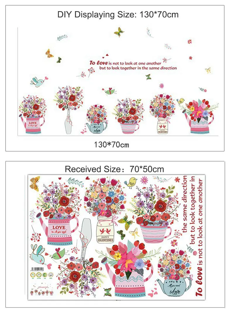 Красочные цветы, настенные стикеры в горшке, цветочная корзина, бабочки, наклейки, домашний декор, художественные настенные наклейки для гостиной, спальни