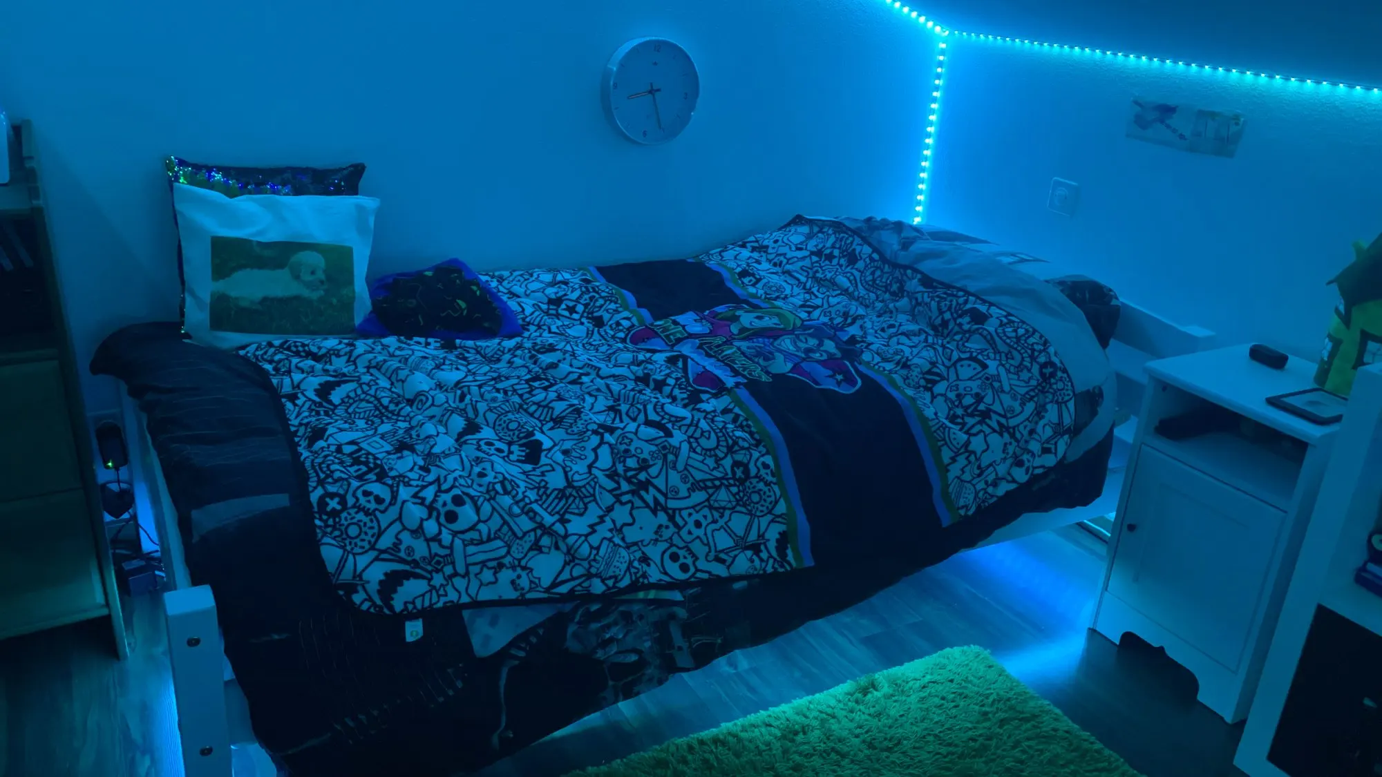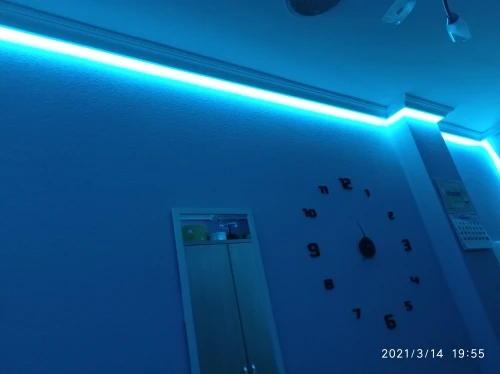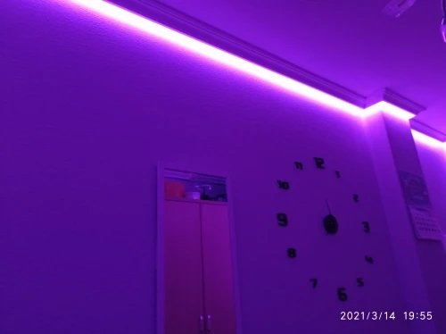 Хорошая лента, спокойно работает через Google Home (хотя настроек в нем конечно куда меньше чем в оригинальном приложении. Тем не менее, основные функции, такие как: включение и выключение, выбор цвета и яркости он выполняет без проблем). Из минусов: блок питания издает не сильно приятный писк. Он не громкий, но если у вас розетка рядом с кроватью, то возможно ночью будет раздражать