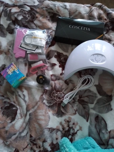 Очень довольна заказом, всё работает, всё пришло и очень быстро. Лампа нагревается чуть-чуть, поэтому подумала, что не работает, но только потом поняла, что она и не должна сильно нагреваться, всё сушит прекрасно, огромное спасибо