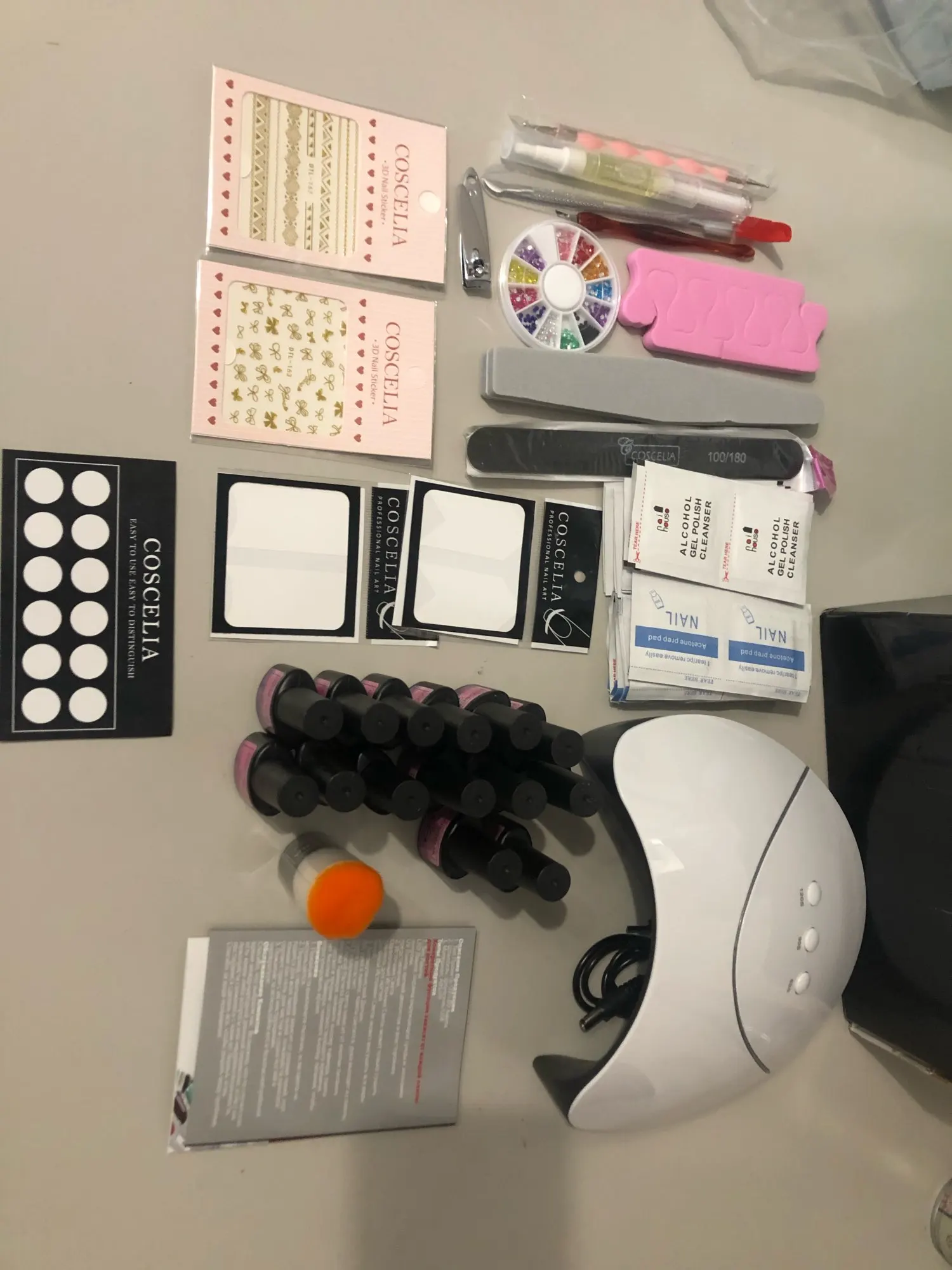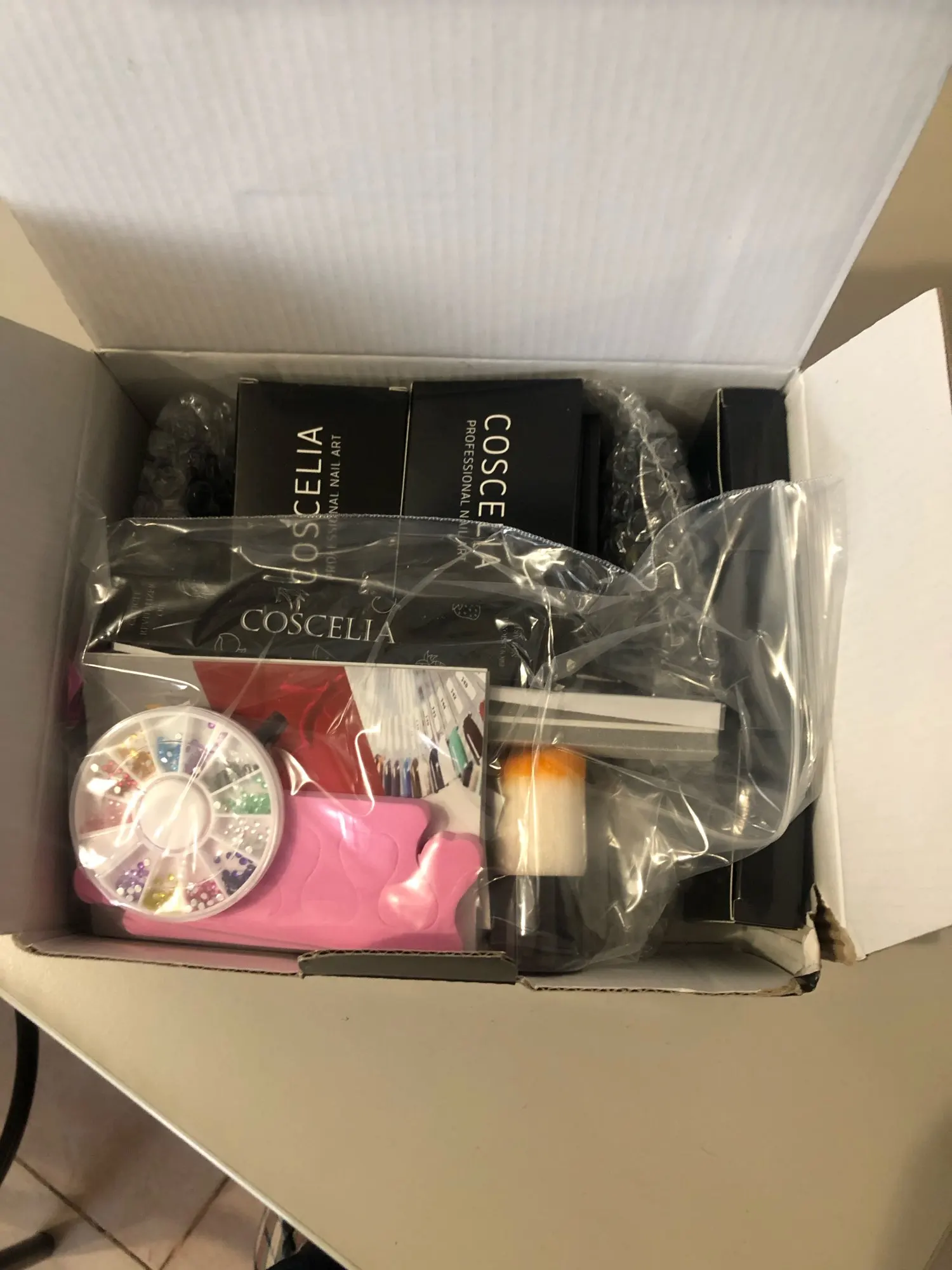 Muy buen producto. Tardó 1 mes y medio en llegar, pero vale la pena la espera. Es un kit muy completo para principiantes. Buena calidad para el precio que tiene. Queda por ver cuánto dura el esmalte. Buena compra!