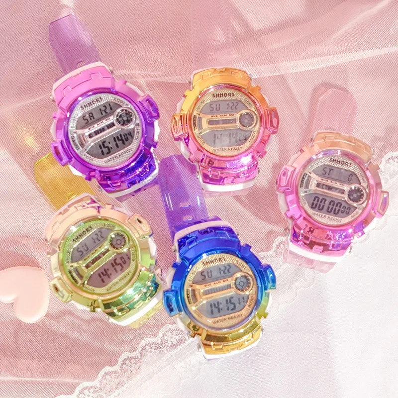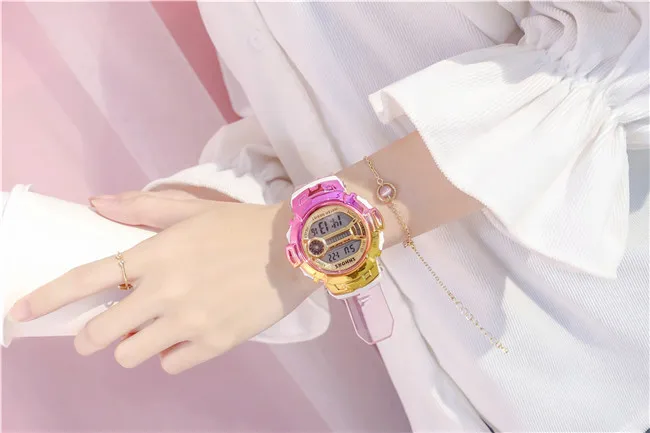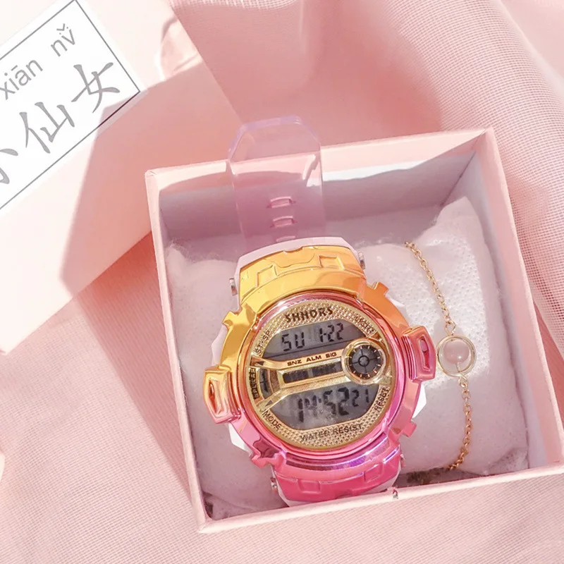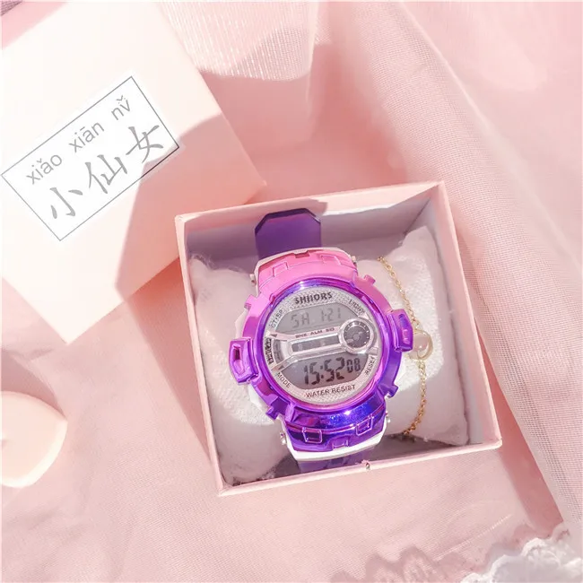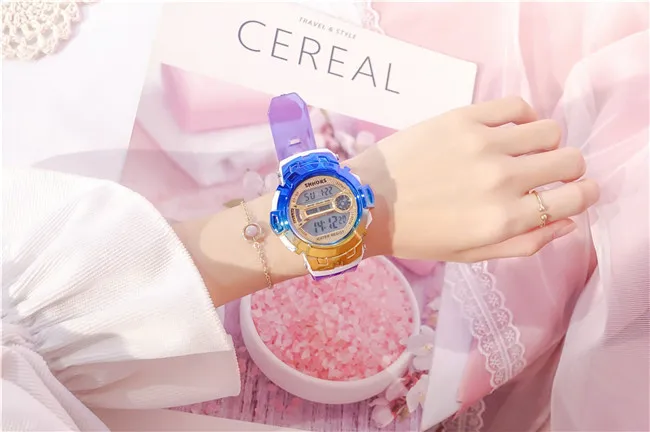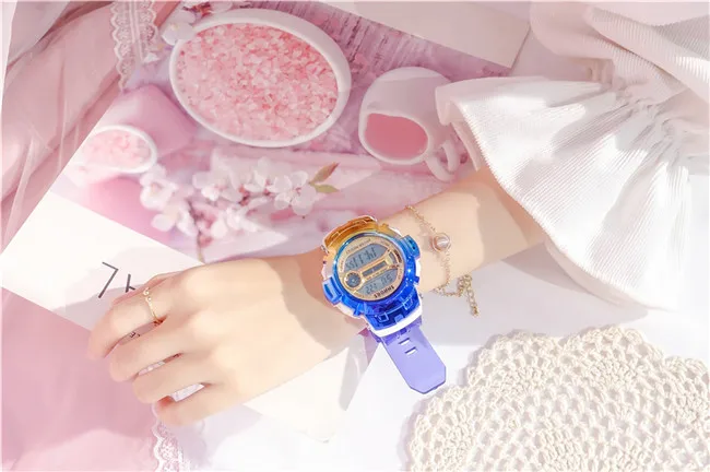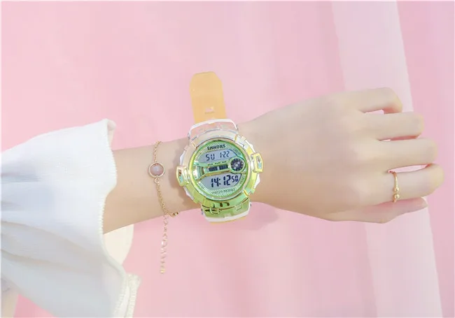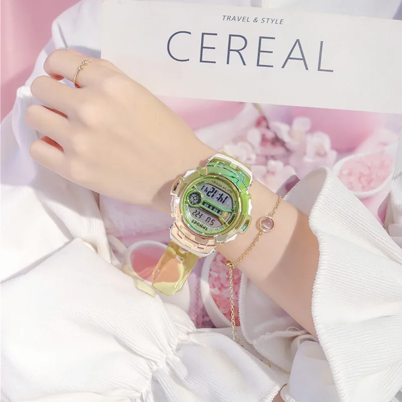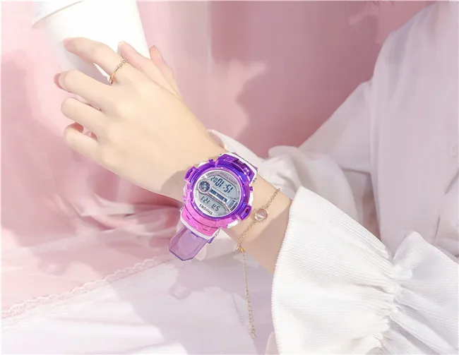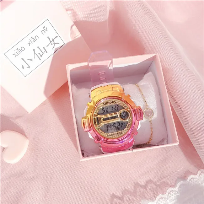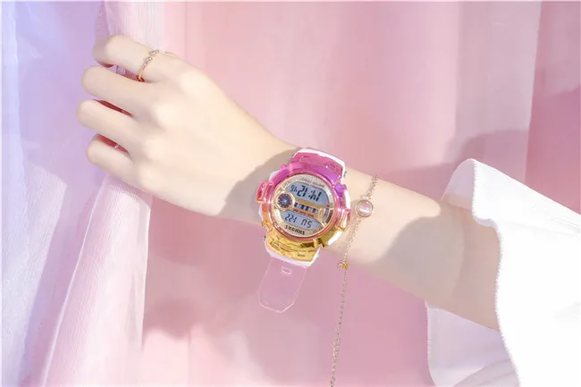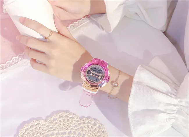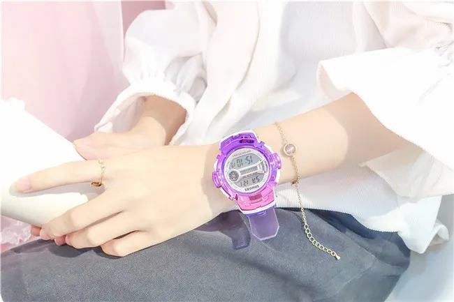 Часы наручные женские цветные, модные повседневные прозрачные цифровые водонепроницаемые с ремешком