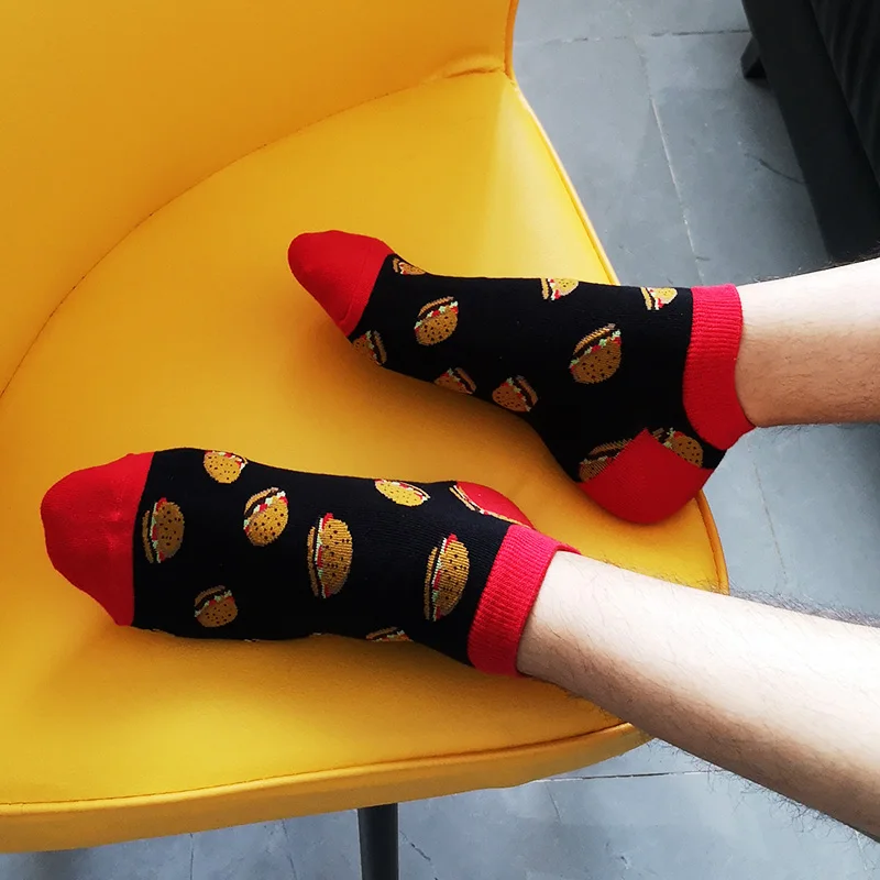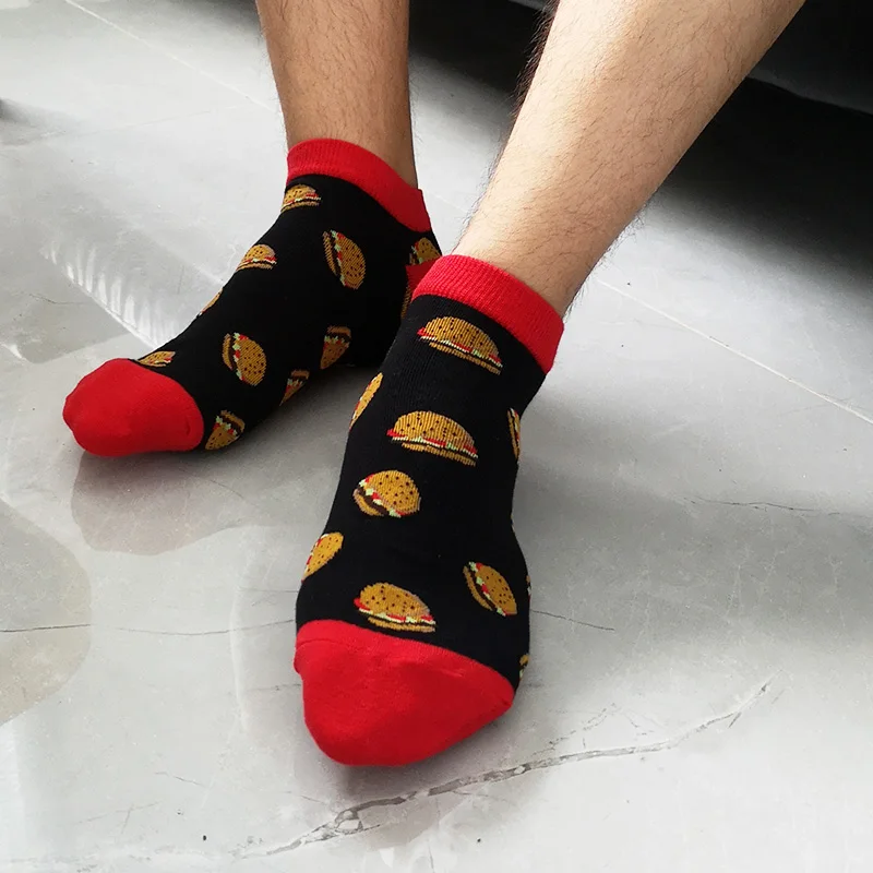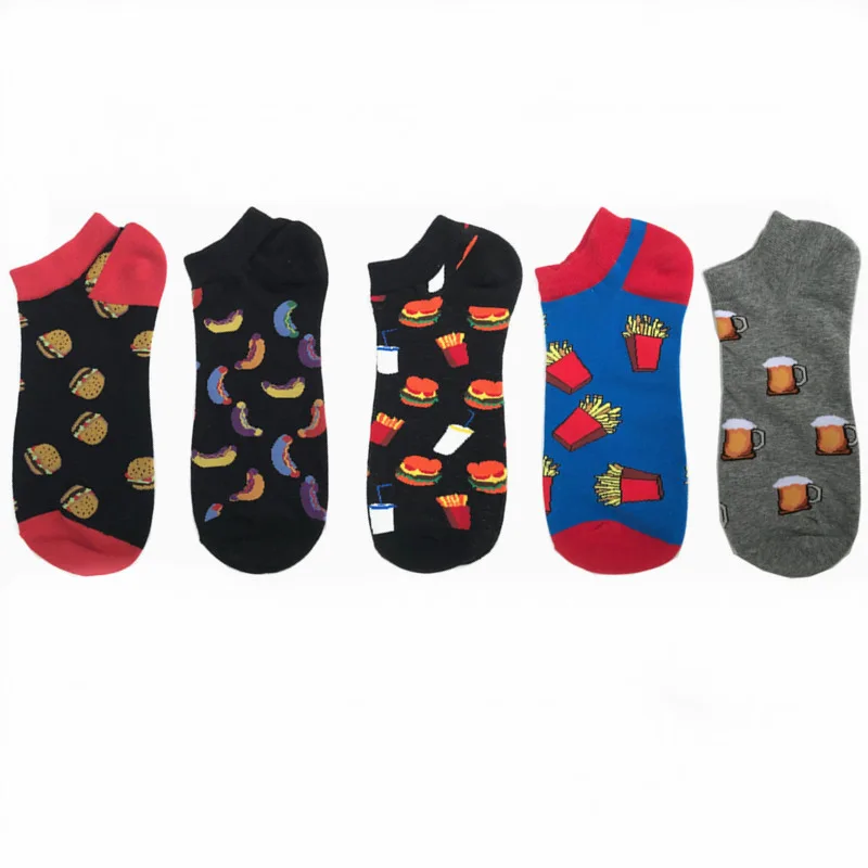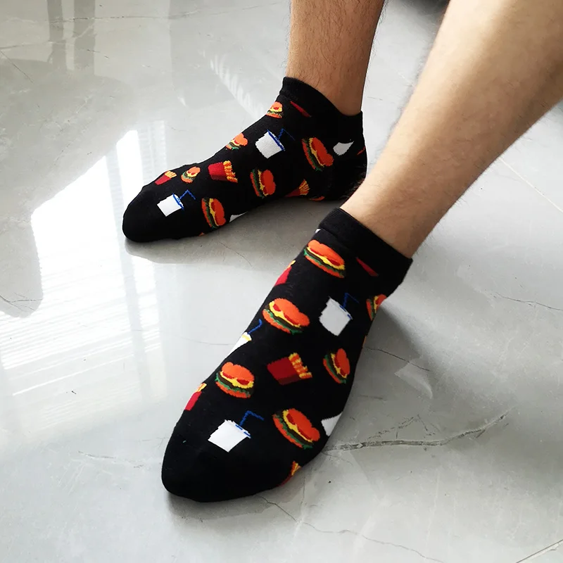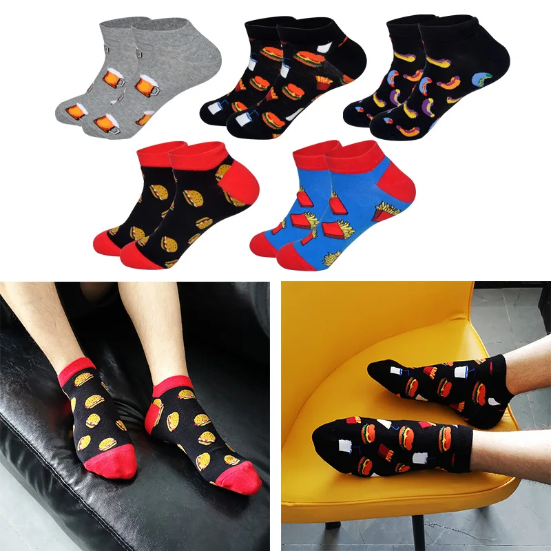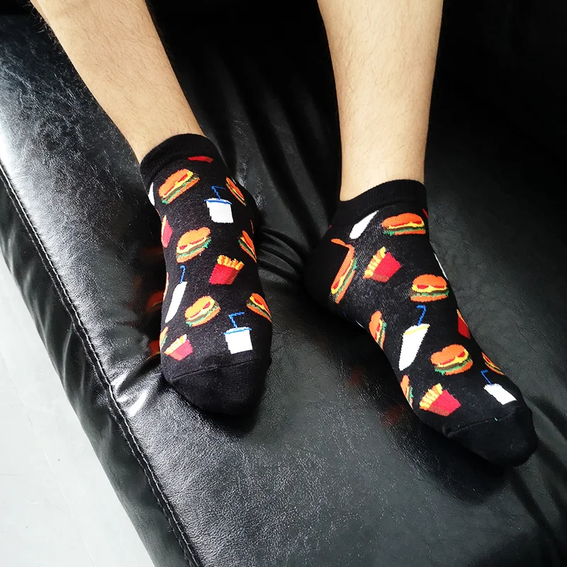 Носки LIONZONE мужские с изображением гамбургера, картошки фри, гороха, пива, еды, новинка, носки забавная лодка с мультяшным рисунком, высокой квалификации, носки из чесаного хлопка