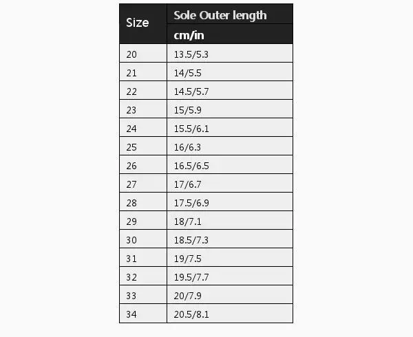 Внешняя длина подошвы (см/дюйм)::20/7.9