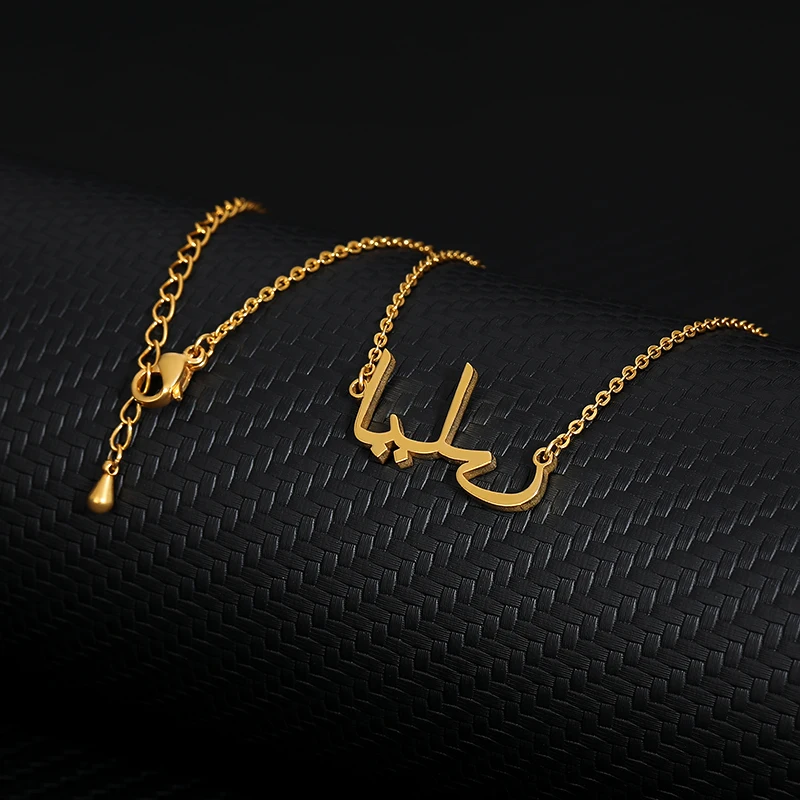 Ожерелья на заказ с арабскими буквами для женщин и мужчин, ожерелье из нержавеющей стали на заказ, подвеска, персонализированная цепочка на шею, ювелирные изделия