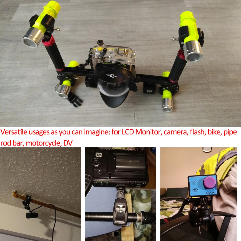 1, со стандартным 1/4 "-20 резьбовой головкой для Gopro экшн-камеры, свет камеры, микрофон, Iphone и Ipad, работает для любого трубы или бар, что s до 1,5 дюйма в диаметре.2. Головка Rachet поднимается и вращается на 180 градусов и регулирует Фиксатор ручки под любым углом.3. Отлично работает на штативах, музыкальных подставках, подставках для микрофона, мотоциклах, велосипедах и других трубах или брусках, используемых для камер и креплений.4. Размеры: 2,3x3,2x0,8 дюймов.5. Материал: твердый пластик + металлический винтПримечание: камера, крепление для ipad, ipad, штатив только для дисплея.