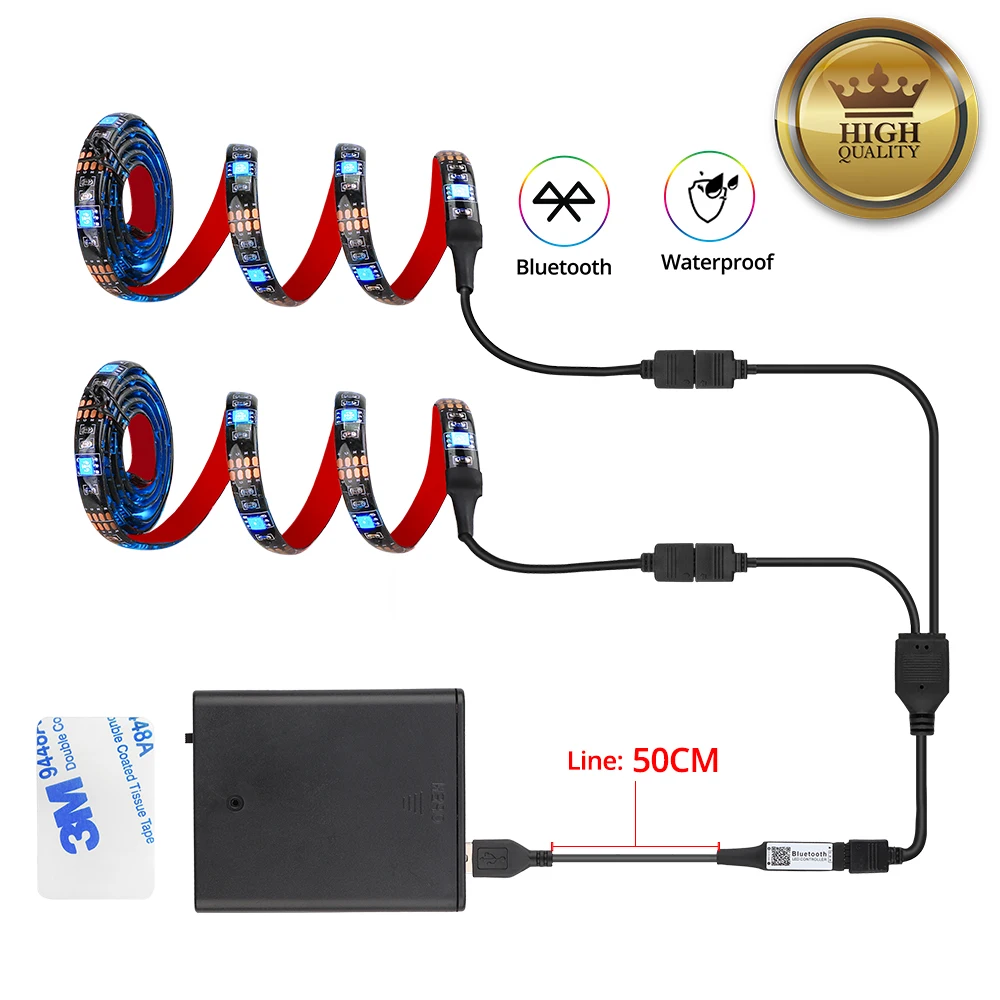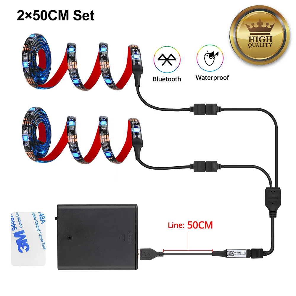 Светодиодная лента, 5 В, USB, RGB, Bluetooth, беспроводное умное управление через приложение, светильник для ПК на батарейках, HDTV, настольный фоновый светильник, 1 м, 2 м