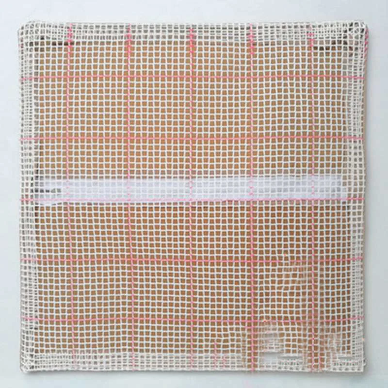 Чистая вышитая ткань с сеткой с красной подкладкой для удобного подсчета.