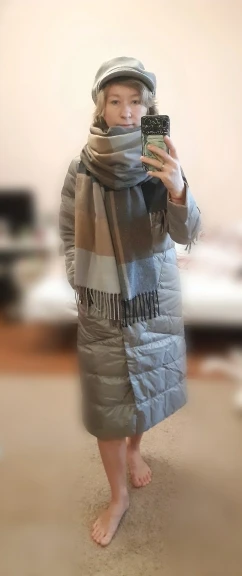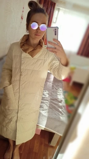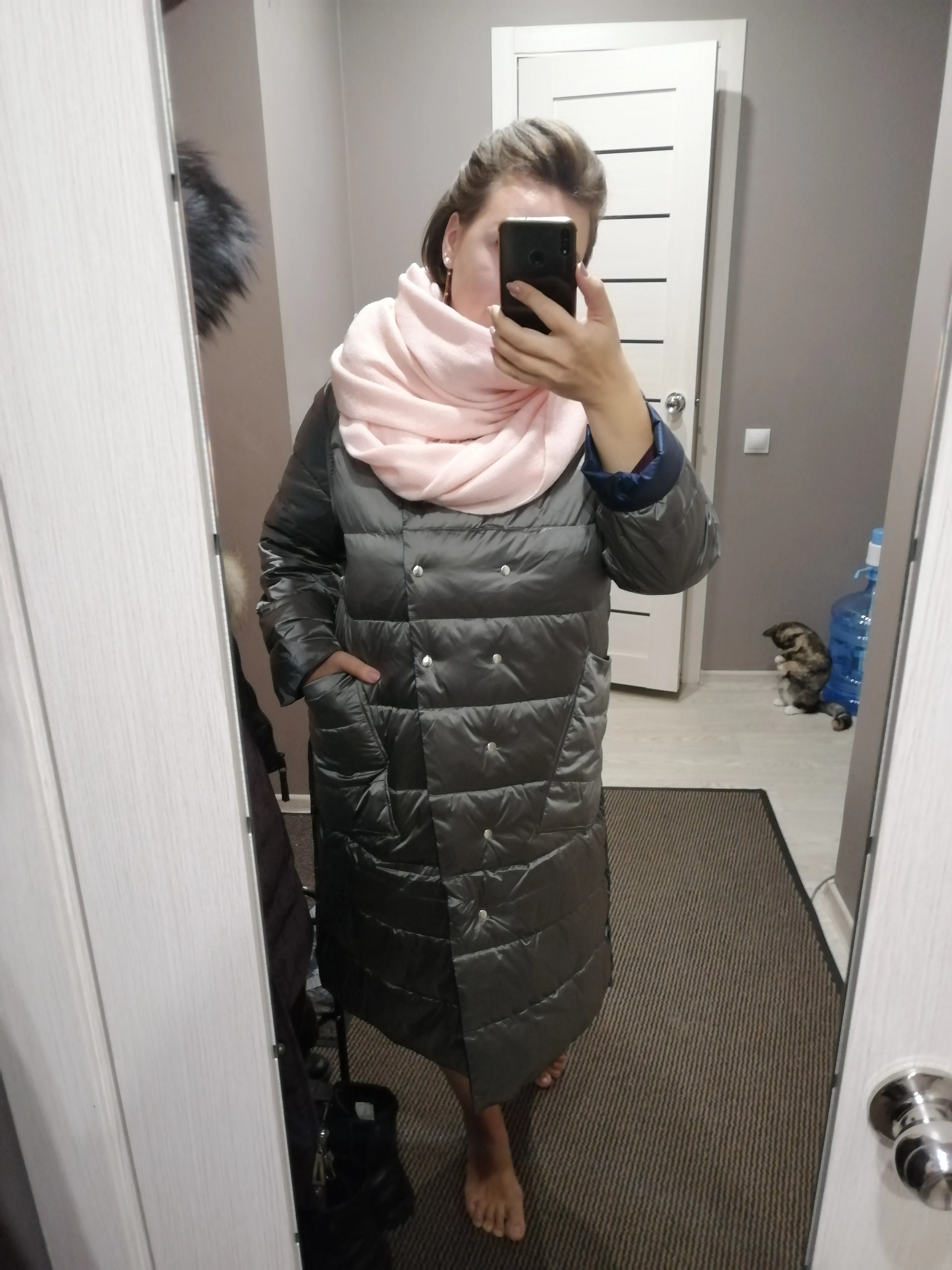 Доставка Мега быстрая. 2 недели, дпд. Продавец общительный, по размер сориентировал, все рассказал. Двустороннее пальто на пуху, но тонкое. В рукавах пуха почти нет. На тёплую осень. Но я мерзлявая )) кто то может и до 0 будет ходить. На российский 44 взяла L. В принципе норм, но можно было бы и побольше (в груди прям впритык)