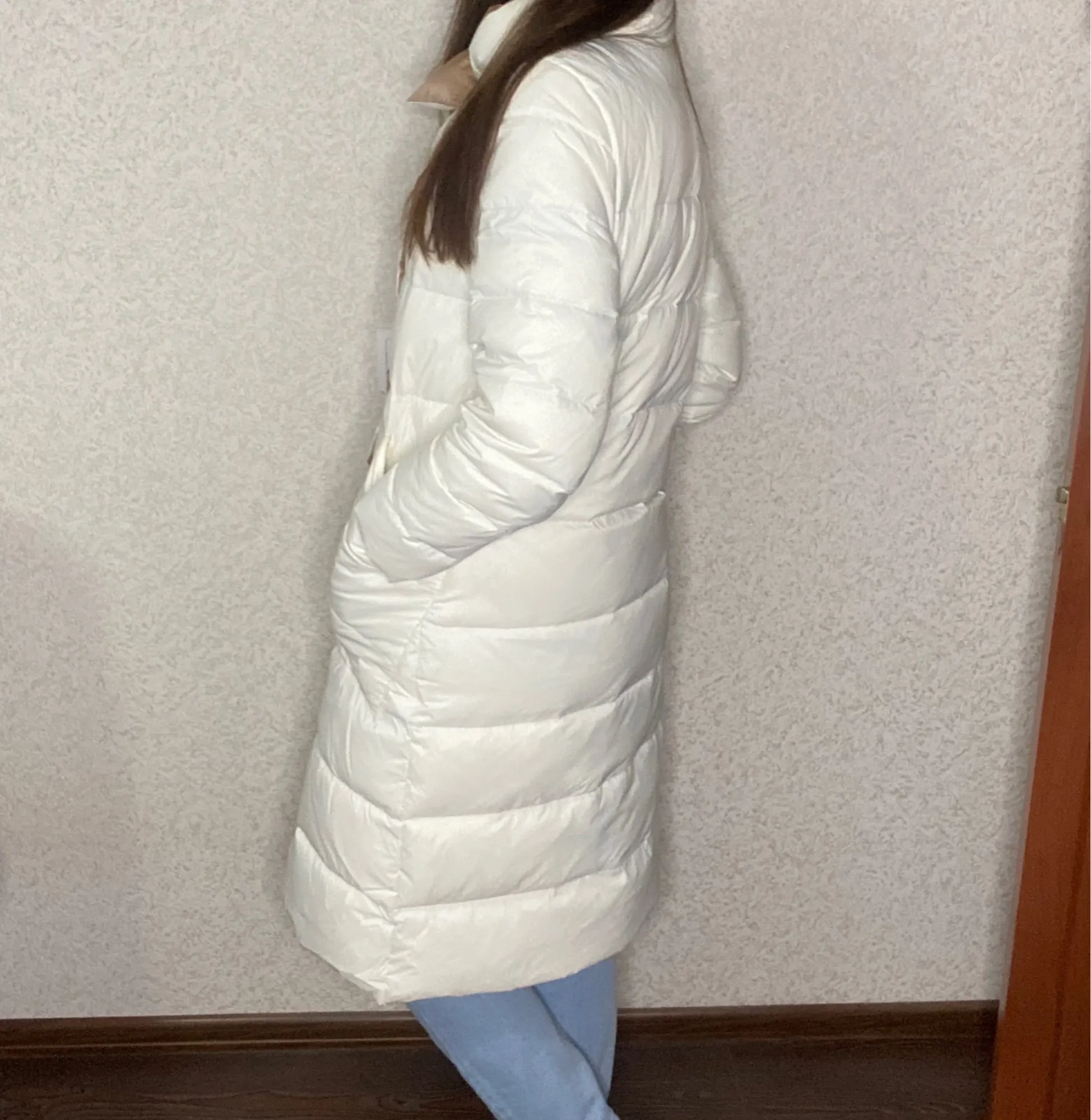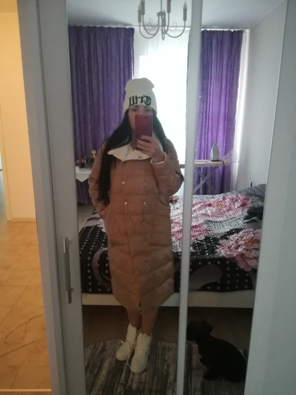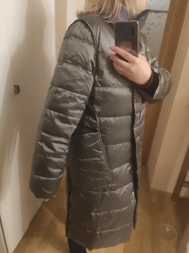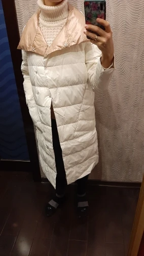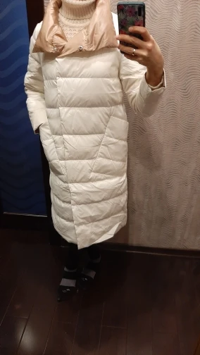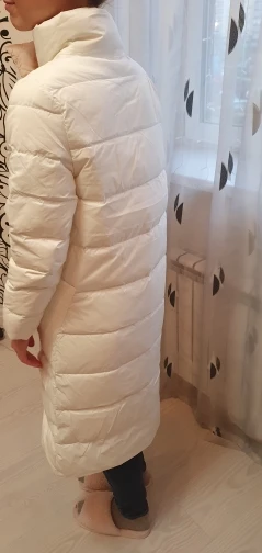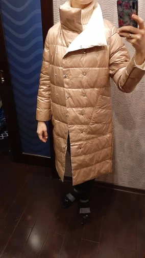 Очень классная и качественная куртка. Доставка до Москвы за 8 дней! Самая моя быстрая посылочка с Али. Прошито ровненько везде, наполнитель утиный пух (нужно время,чтобы распушился). Этикетку можно найти в одном из карманов. На рост 155 см и вес 43 кг заказала размер S. Не ошиблась. Села идеально, есть запас для свитера. Рукав для меня не короткий, даже подвергнуть можно. С продавцом не общалась, но хочу сказать спасибо за хороший товар и быструю доставку.