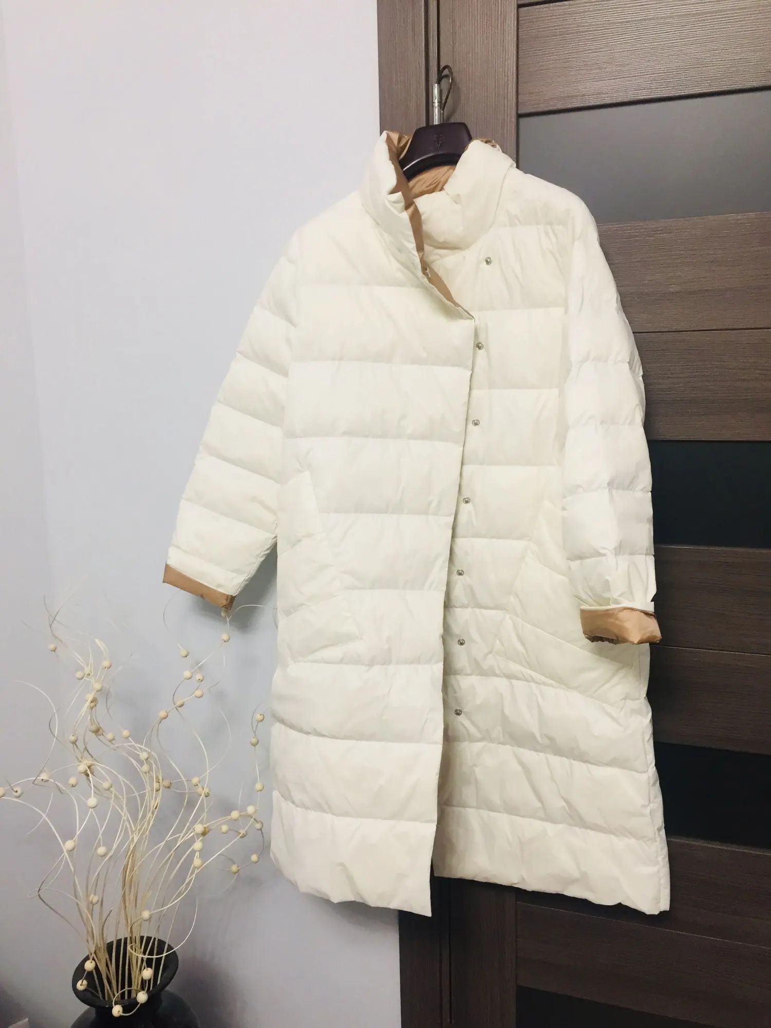 Куртка женская двухсторонняя на утином пуху, с высоким воротником, двухбортная, зимняя, 2021