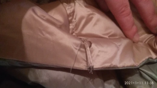 На обратной стороне и швы все налевую сторону. И когда разрезала пакет, разрезала и куртку. Так упаковано неудачно( а так качество хорошее. На 46/48 5 хл все таки большой. Но с кофтой пойдет