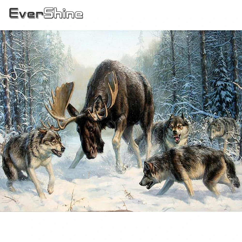 EverShine 5D алмазная живопись, Новое поступление, алмазная вышивка с животными, наборы для вышивки крестиком, картина Алмазная мозаика "Волки" Стразы