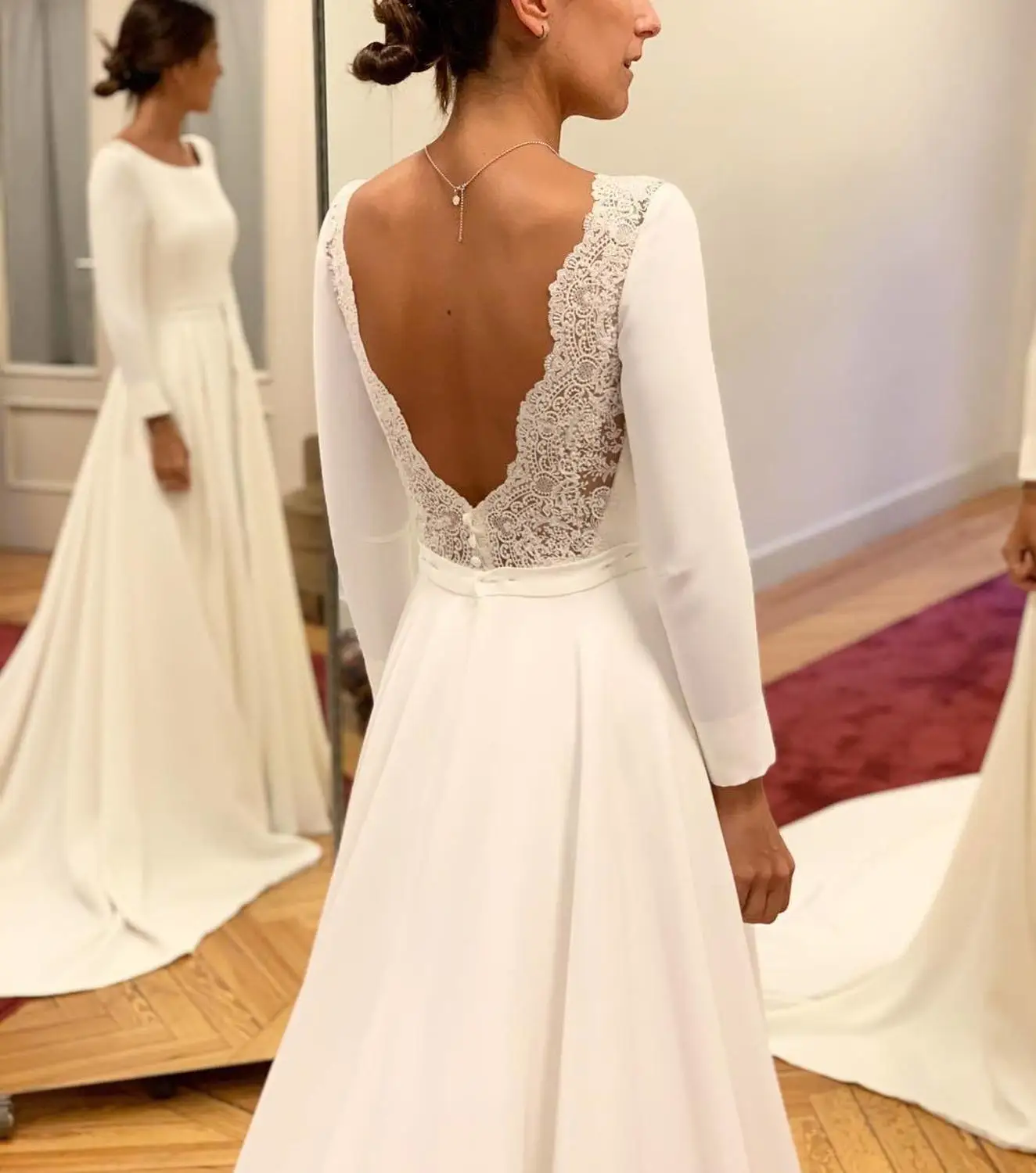 Свадебные платья JIERUIZE с длинными рукавами и открытой спиной, свадебные платья а-силуэта с открытой спиной, свадебные платья, robe de mariee