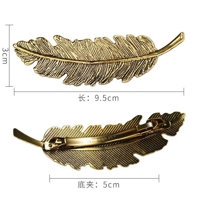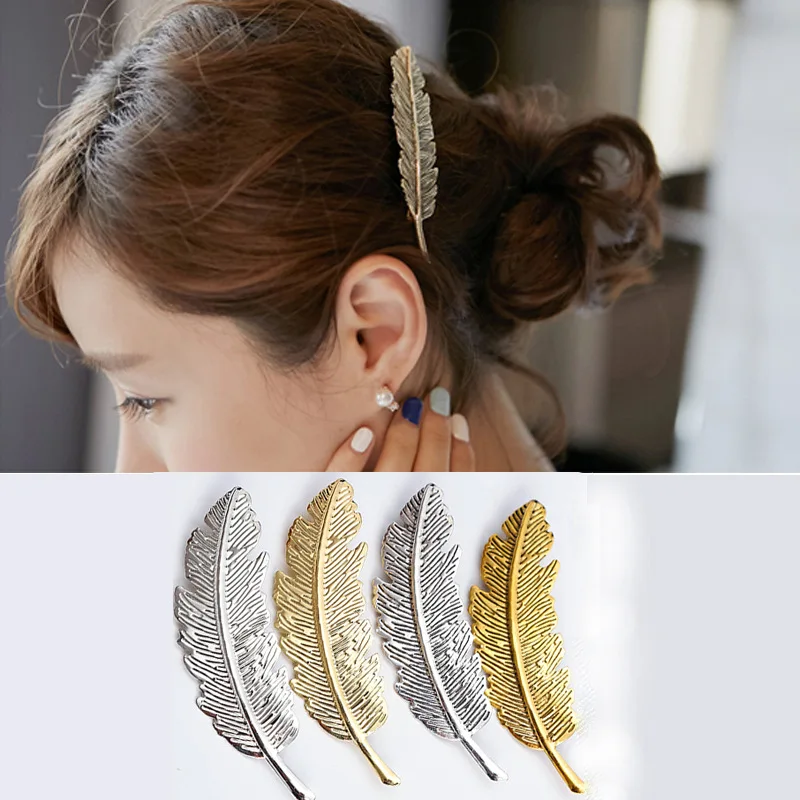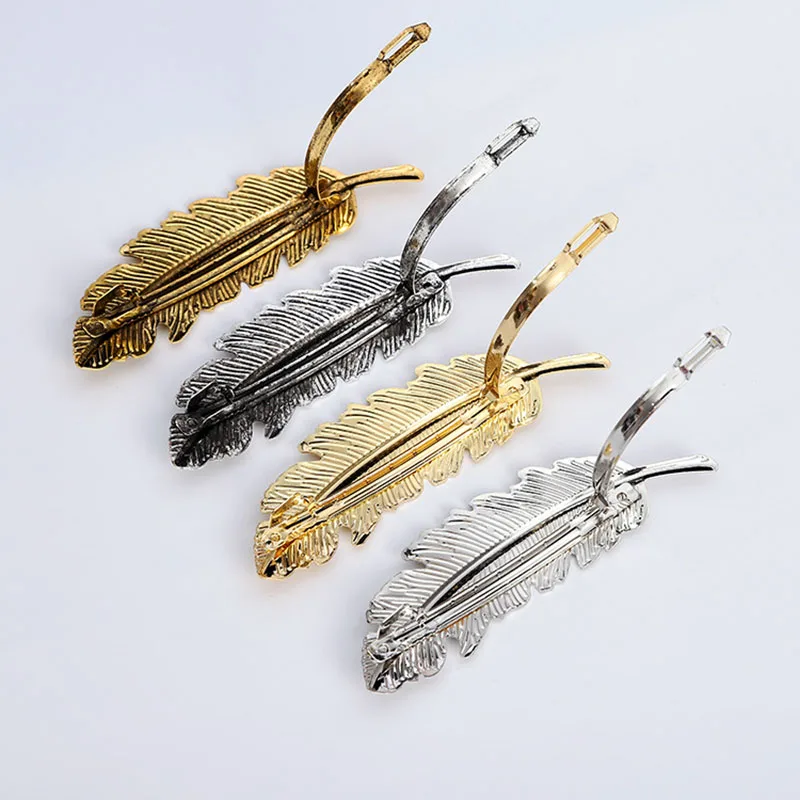 Заколки для волос с перьями, металлическая форма листа, аксессуары для волос