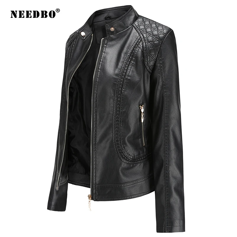 Куртка женская из искусственной кожи на молнии, Байкерская, повседневная, осенне-зимняя