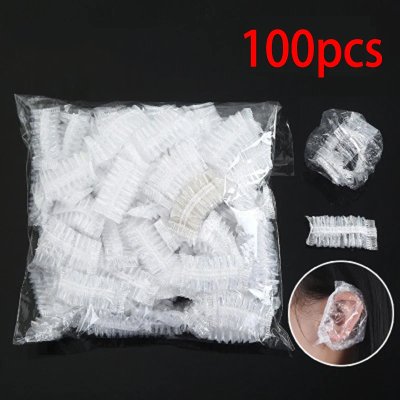 100 шт одноразовые пластиковые водонепроницаемые защитные колпачки для ушей, защитные колпачки для парикмахерских, защитные колпачки для душа