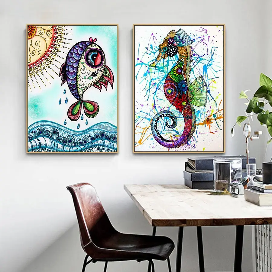 Наборы для вышивки крестиком, наборы для рукоделия, 11CT водорастворимые картины из холста, 14CT Живопись рыбы и hippocampus-NCMA026