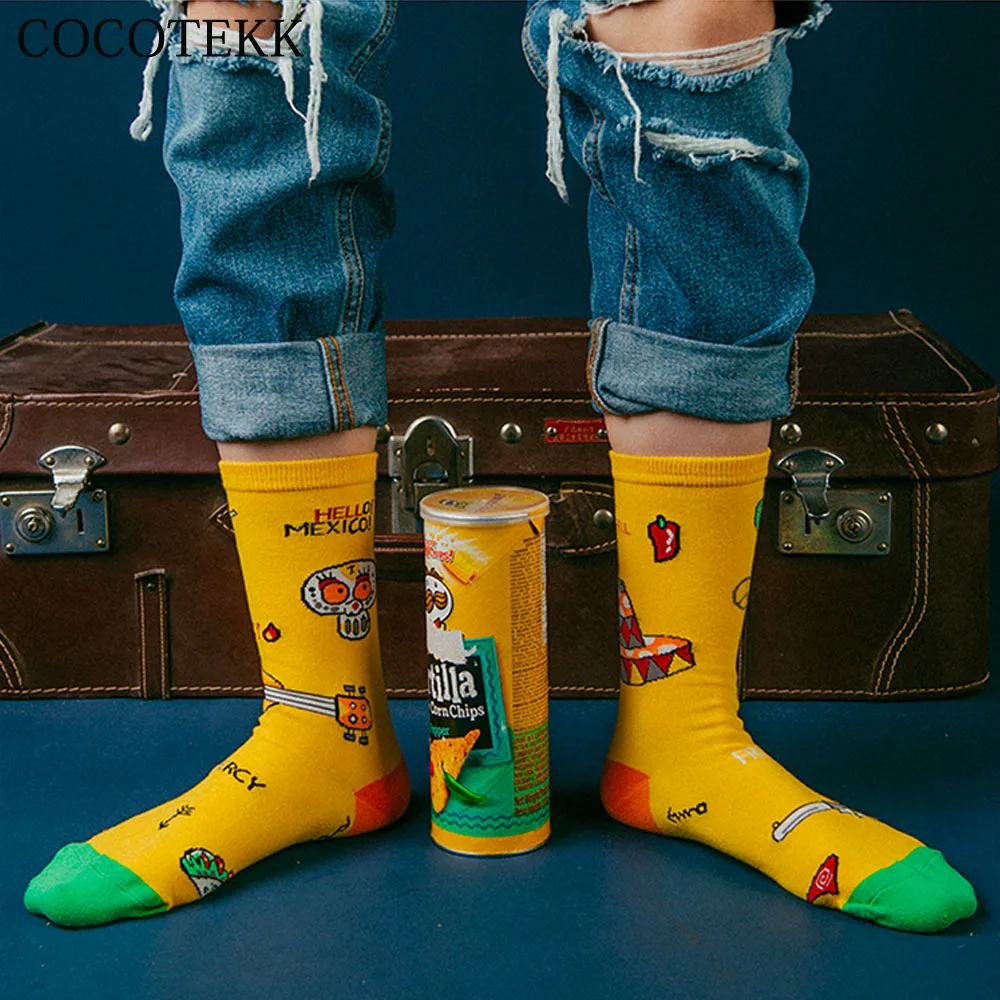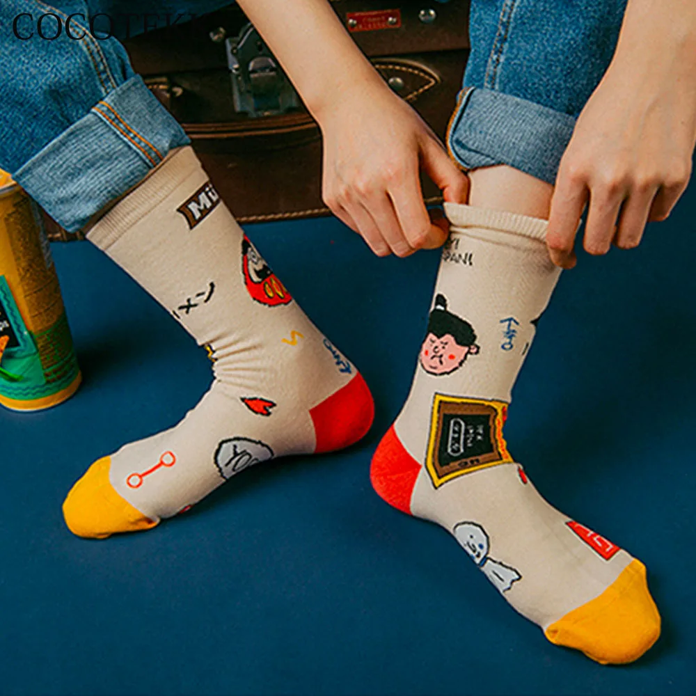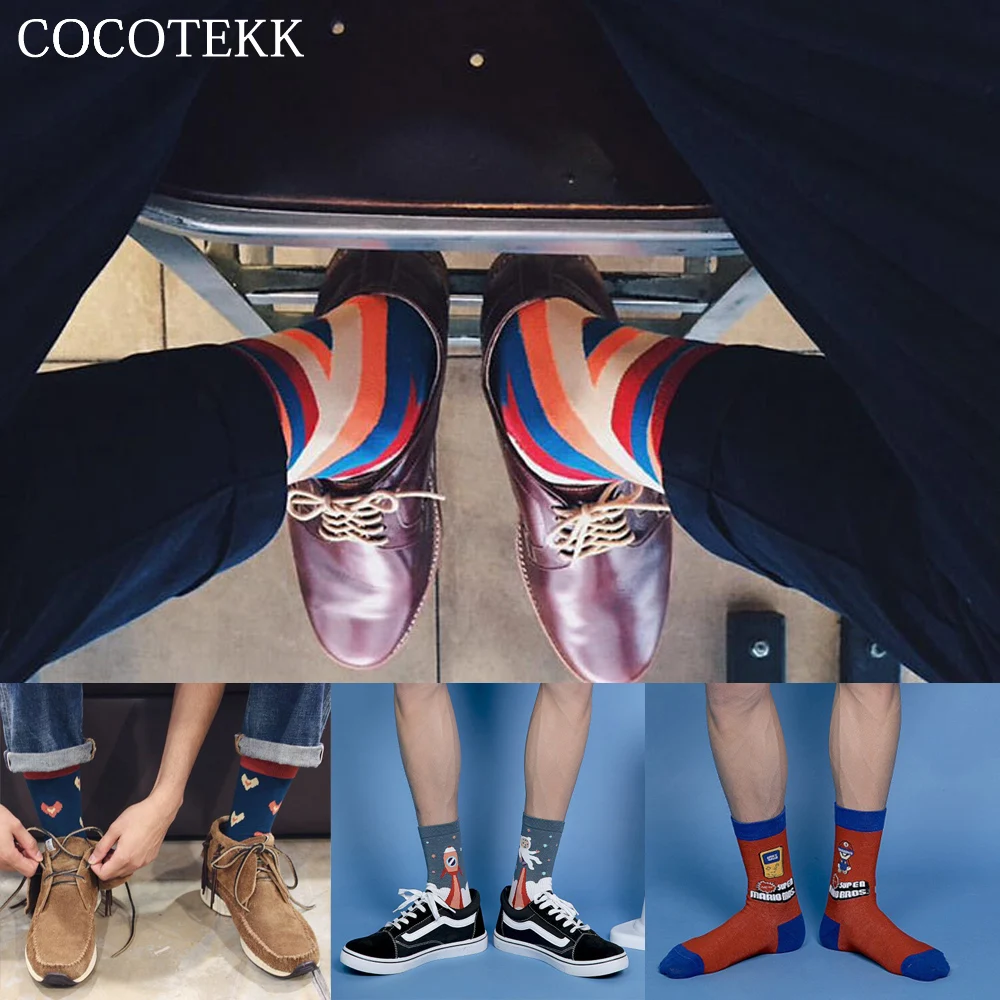 Мужские носки, новинка сезона осень-зима 2019, забавная уличная одежда в стиле хип-хоп, дизайнерские круглые носки, счастливые мужские уличные модные носки в стиле Харадзюку, рождественский подарок