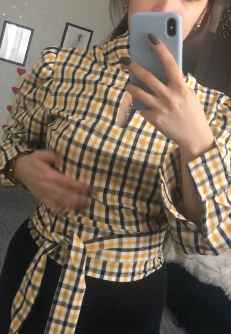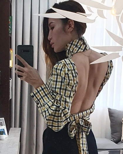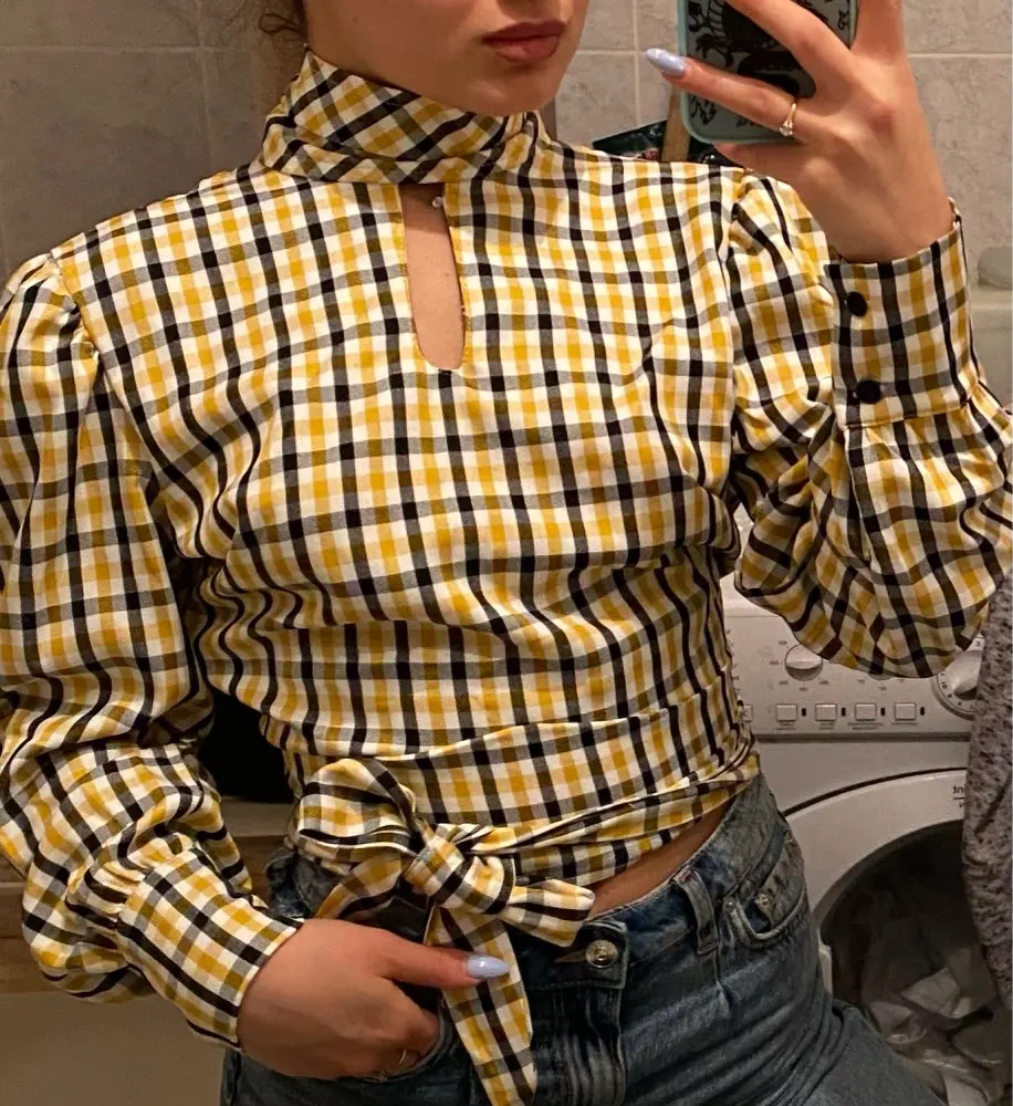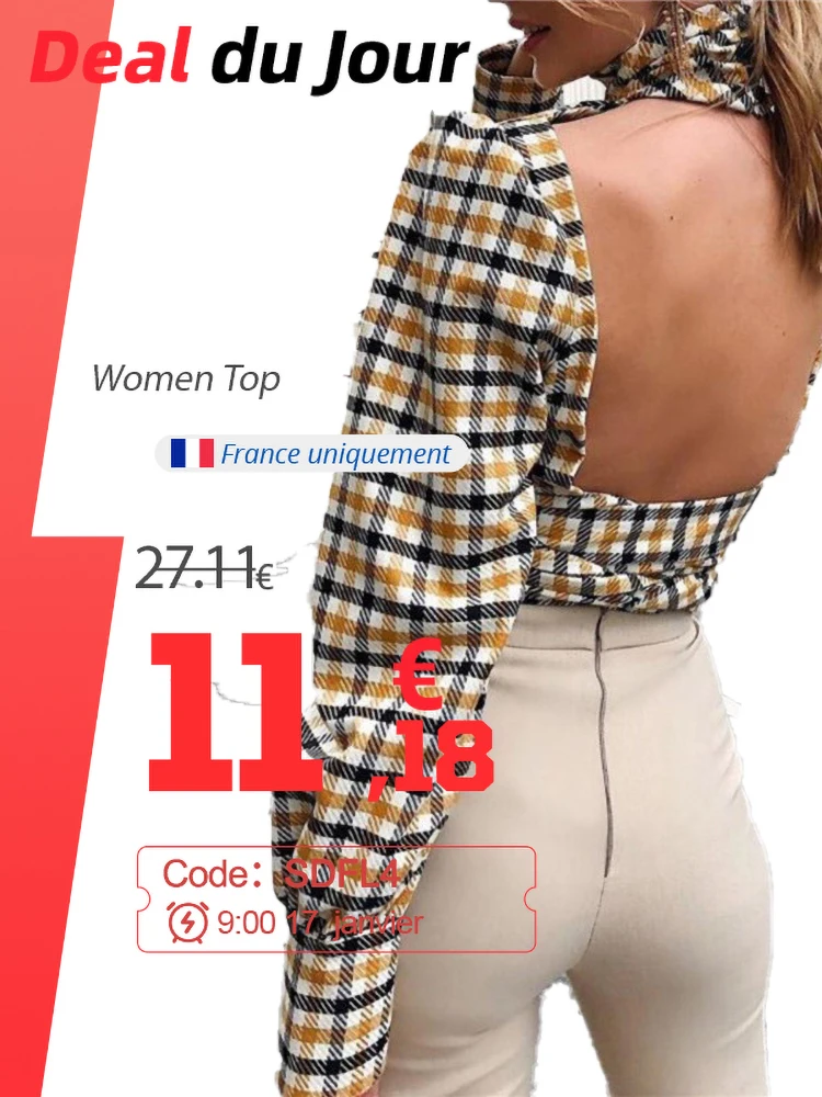 Блузка женская в клетку Articat, с открытой спиной, воротником-хомутом и длинными рукавами, на шнуровке, на лето