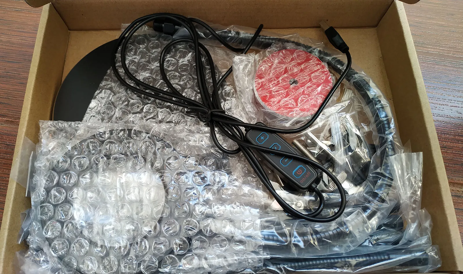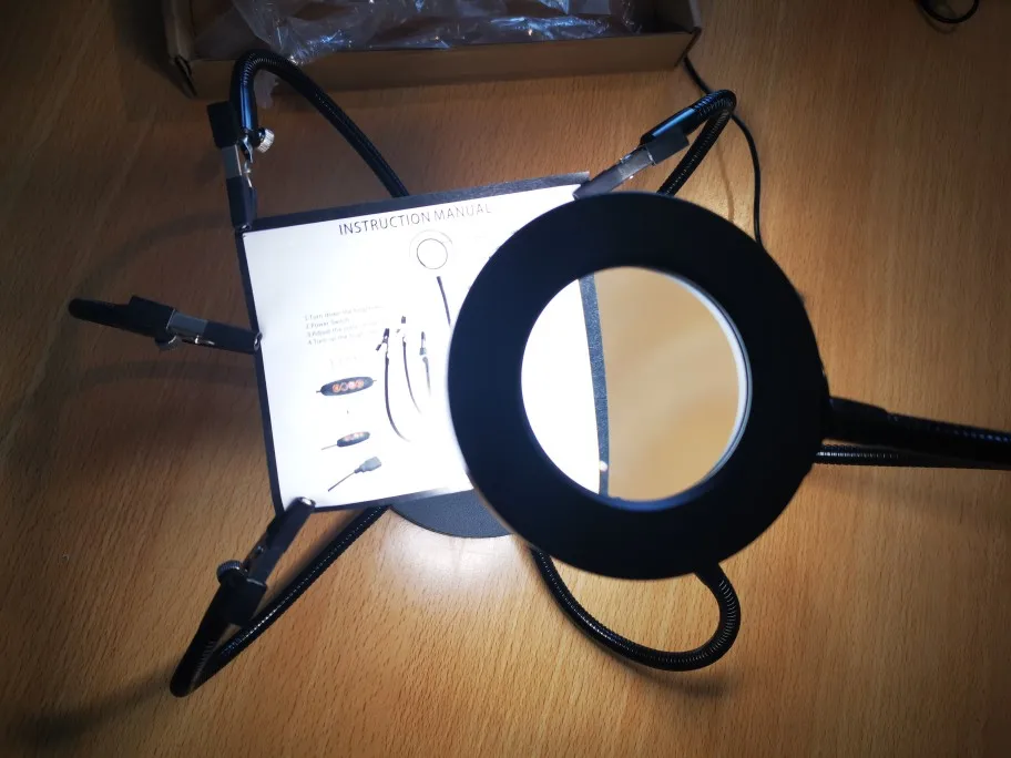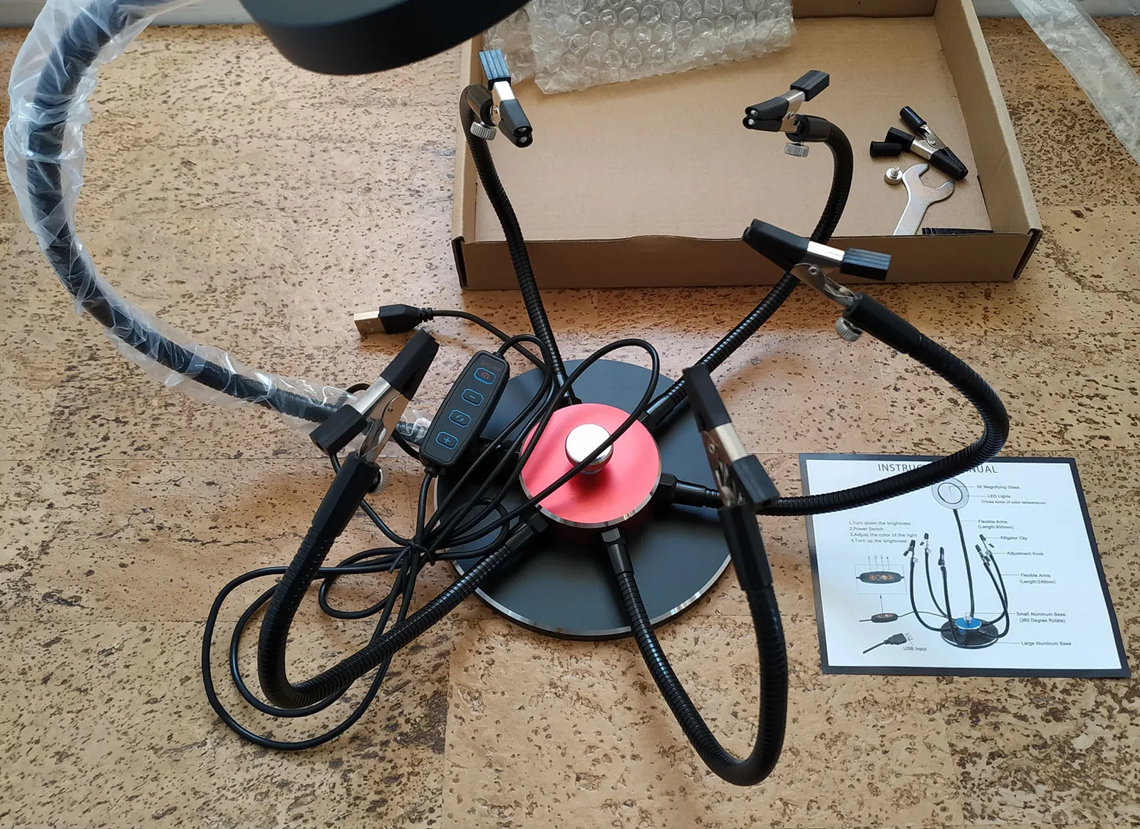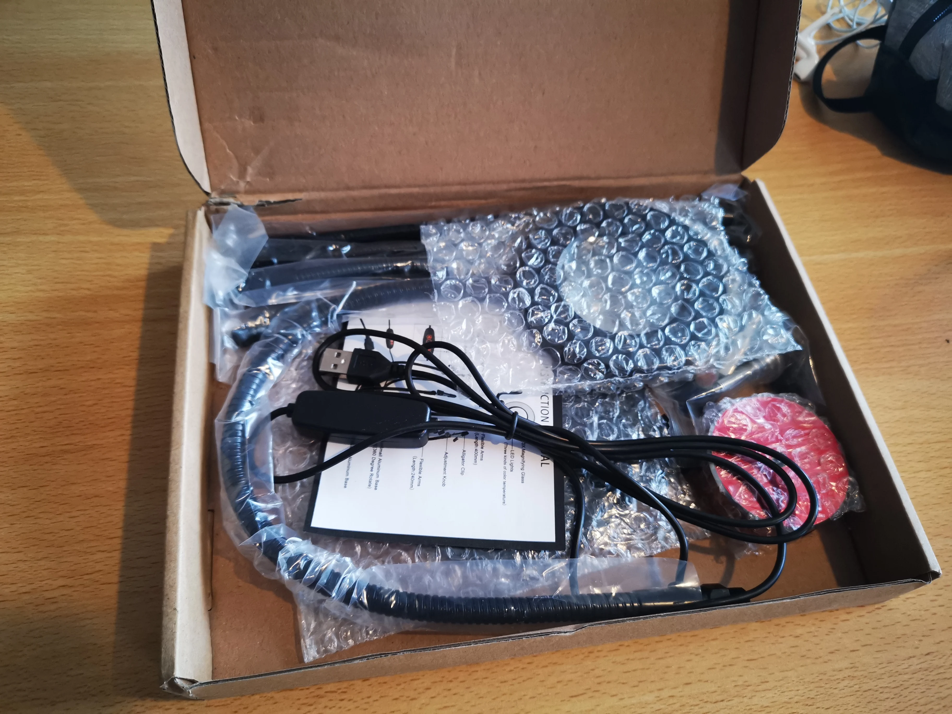 Доставка была удивительно быстрой. Упаковка была достаточно хорошей, чтобы получить посылку в хорошем состоянии. Качество сборки очень хорошее, и было очень легко собрать все детали. Увеличительное стекло немного нестабильно на одной руке и трясется каждым движением на столе сына я использовал другую гибкую руку, чтобы сделать его более стабильным. Все это очень хороший и хорошо продуманный продукт.
