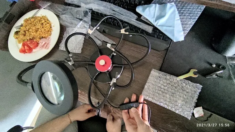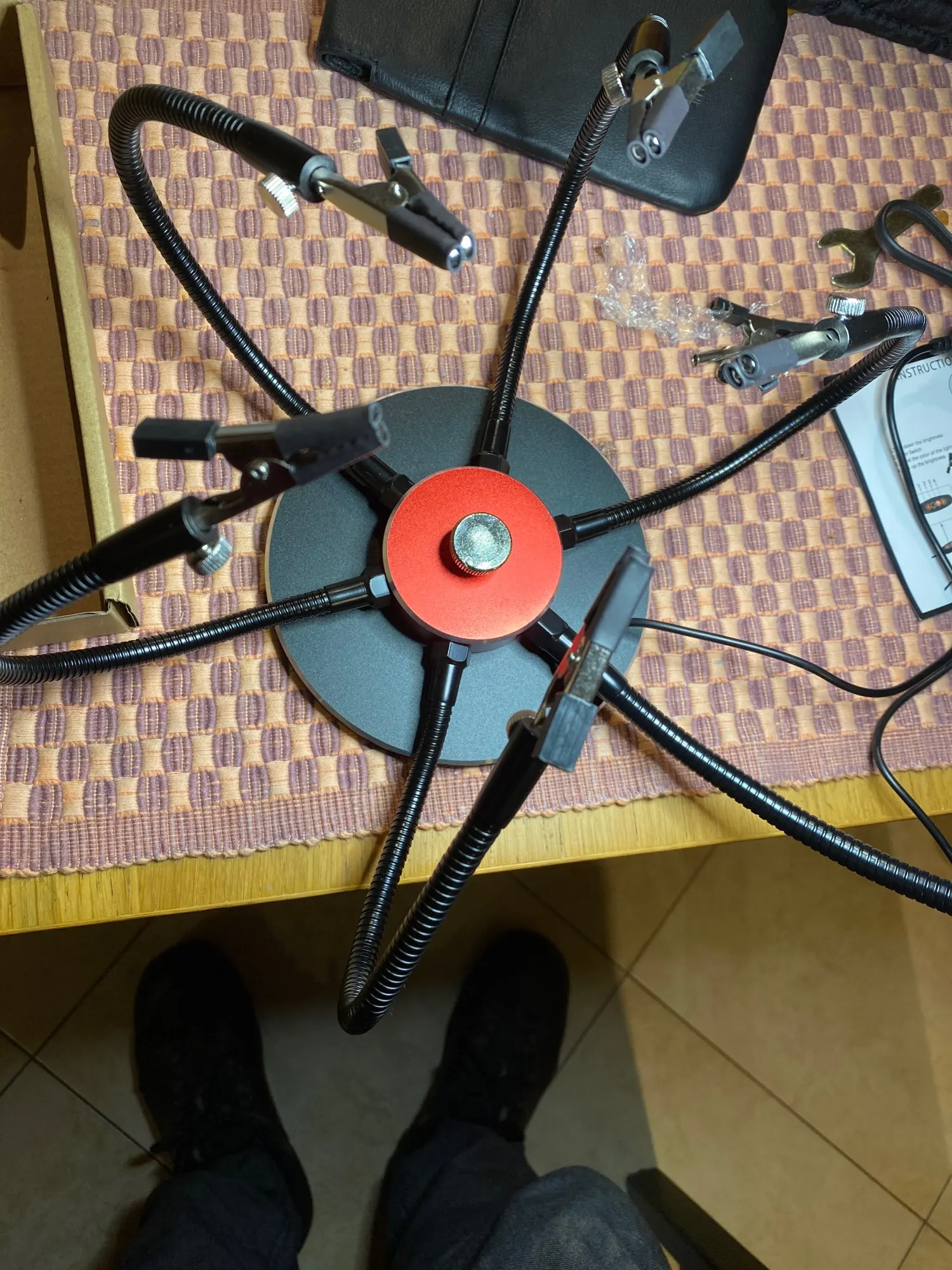 Штука классная, удобная. До этого брал в Леруа за 350 руб. (на Али видел покупают ее за 500 руб.) с двумя зажимами и лупой, оказалось полное фуфло, которым невозможно пользоваться (падает, ничего не зажать, лупой невозможно воспользоваться и т.п.). Эта ни в какое сравнение с той не идет, тут все классно и удобно. Конечно хотелось бы еще подлинней крепеж лупы и зажимов, но не критично. Основной недостаток ... цена, брал за 2140 с купонами, хотелось бы подешевле....