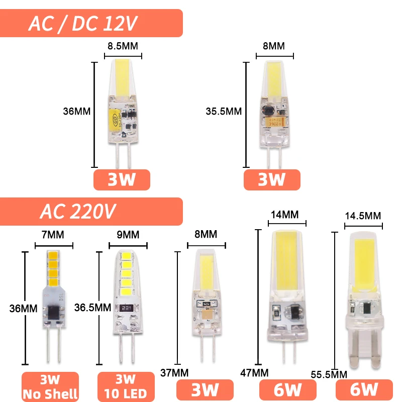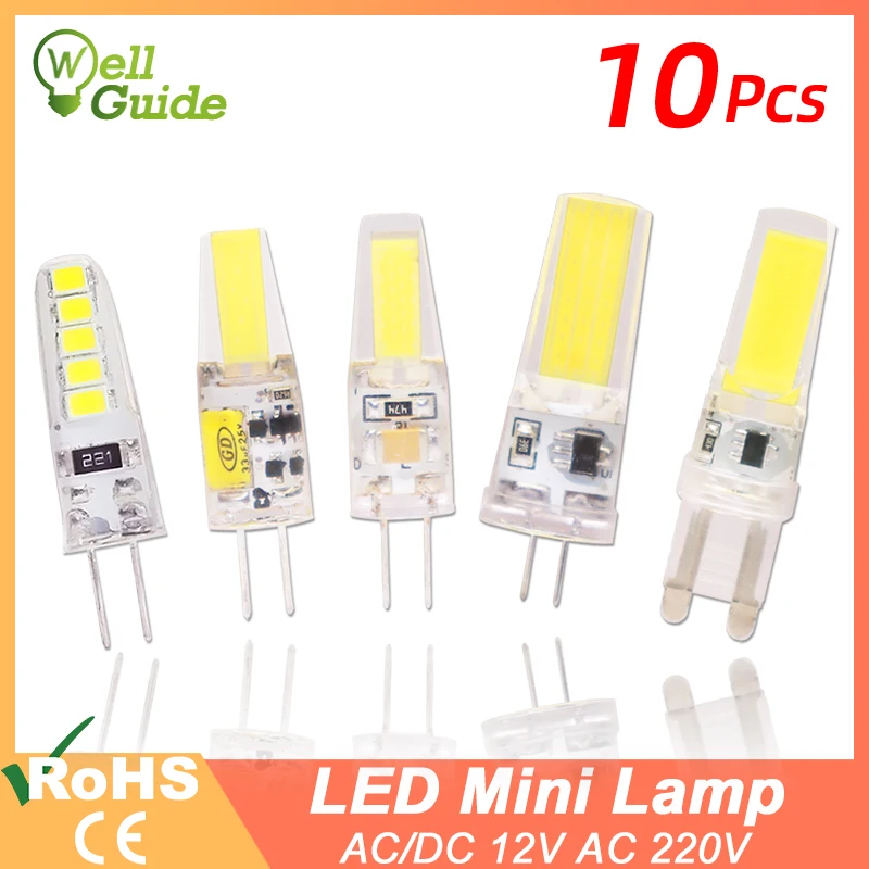 10 шт. COB с регулируемой яркостью LED G4 светильник G9 светодиодный Lamp 220V AC DC 12V светодиодный G9 3W 5W 6W SMD 2835 Светодиодный светильник ing заменить галогенный прожсветильник