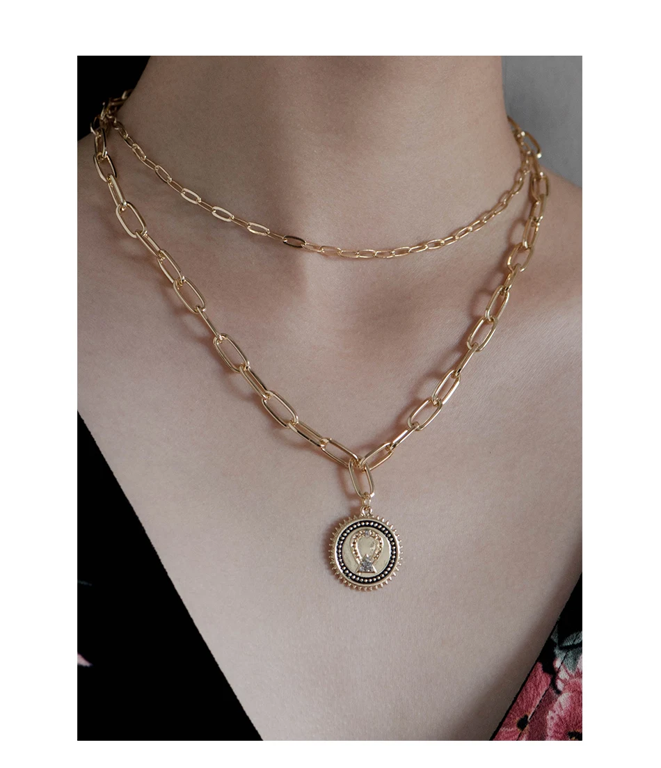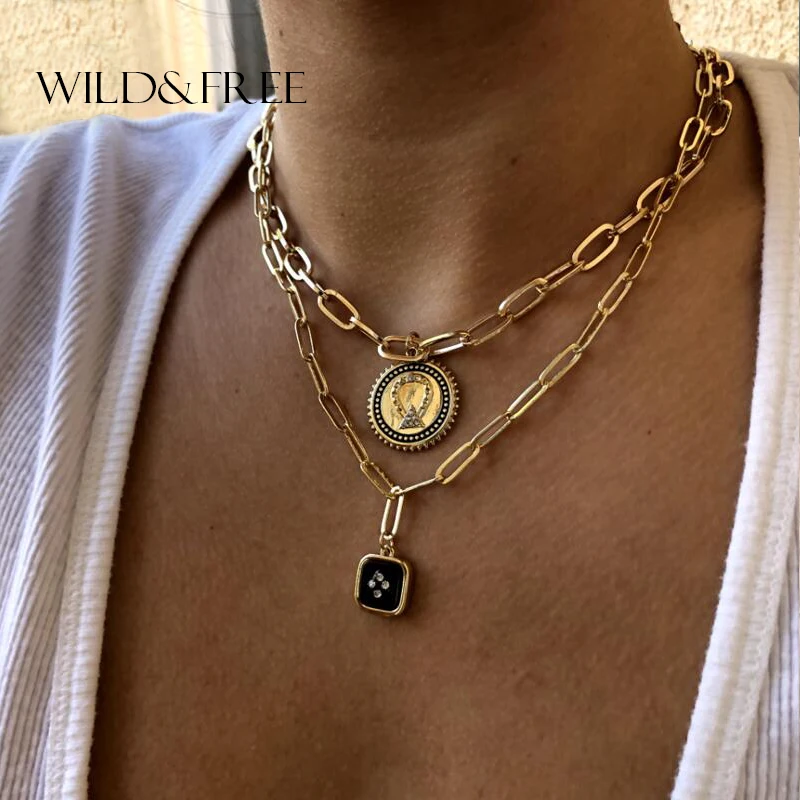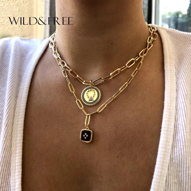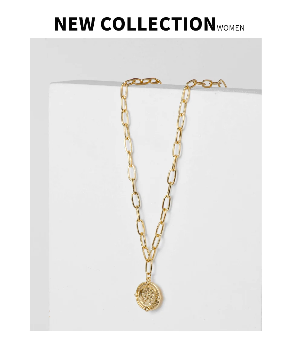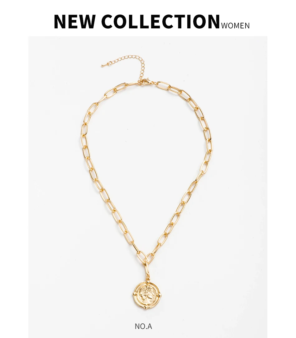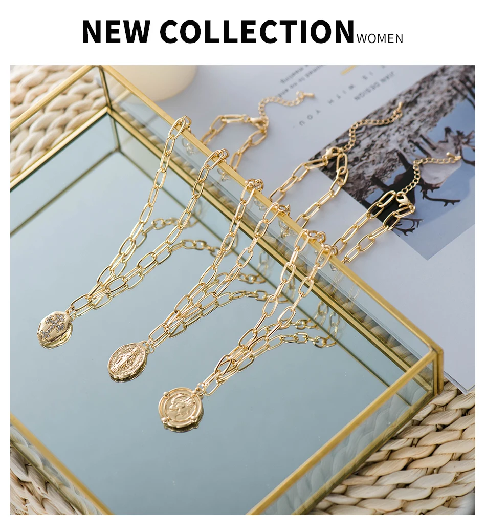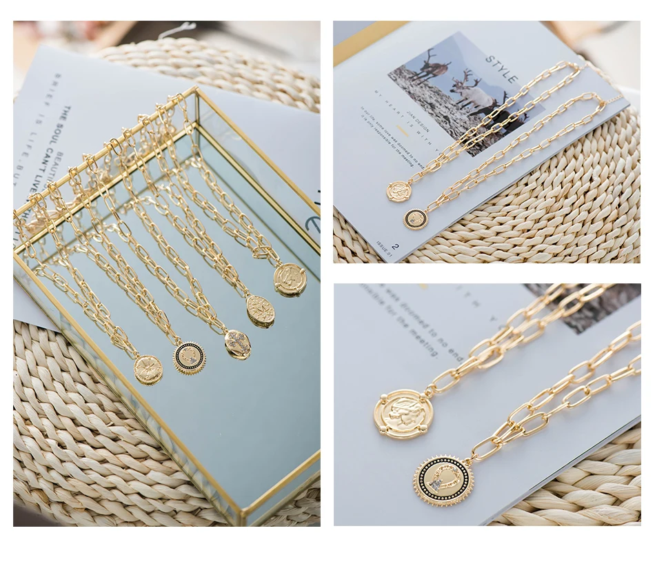 Массивная цепочка с подвеской в стиле панк Женская, колье геометрического дизайна круглой формы, чокер со звездами, модное Ювелирное Украшение с золотыми монетами