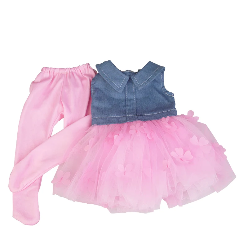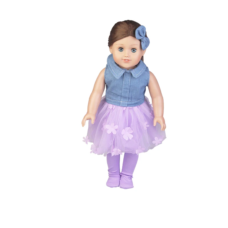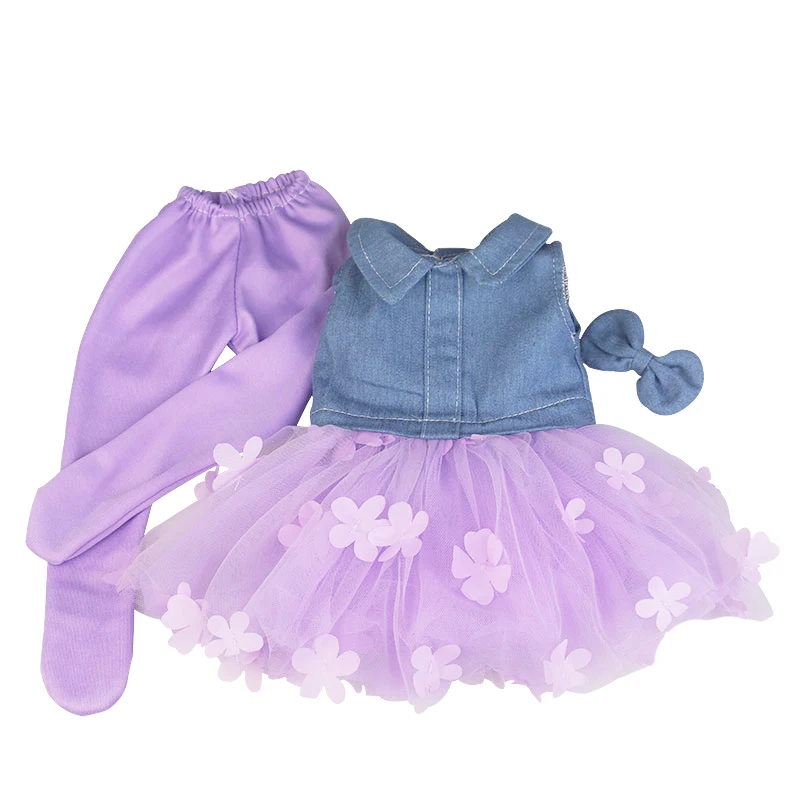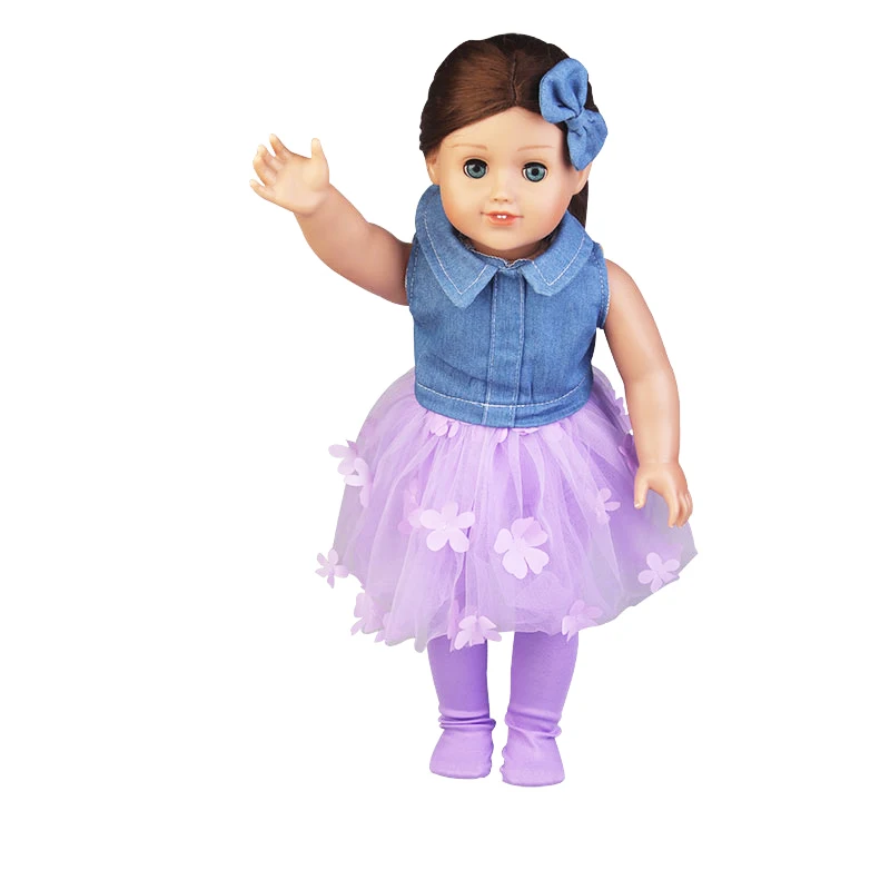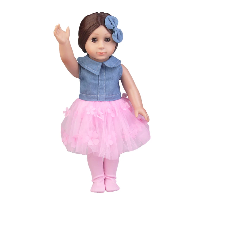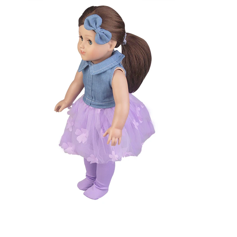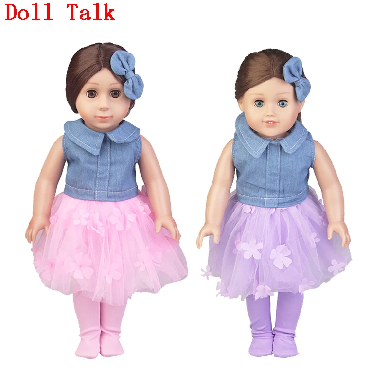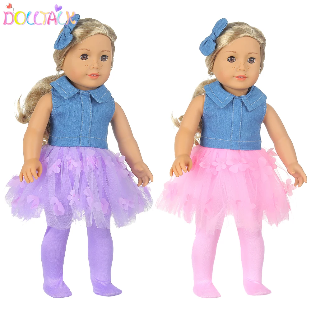 Джинсовая юбка 43 см, модное джинсовое платье с бантом и зажимом для волос, подходит для кукол 17,18 дюйма, Одежда для кукол, подходит для американской куклы