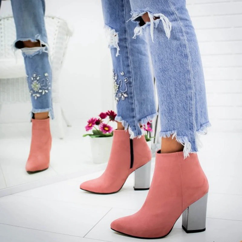 Европейские ботинки с острым носком для девочек, однотонные женские...