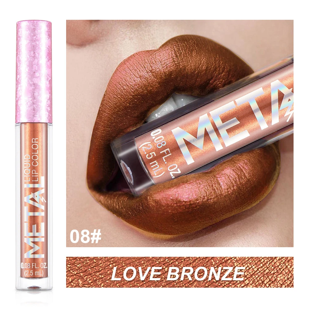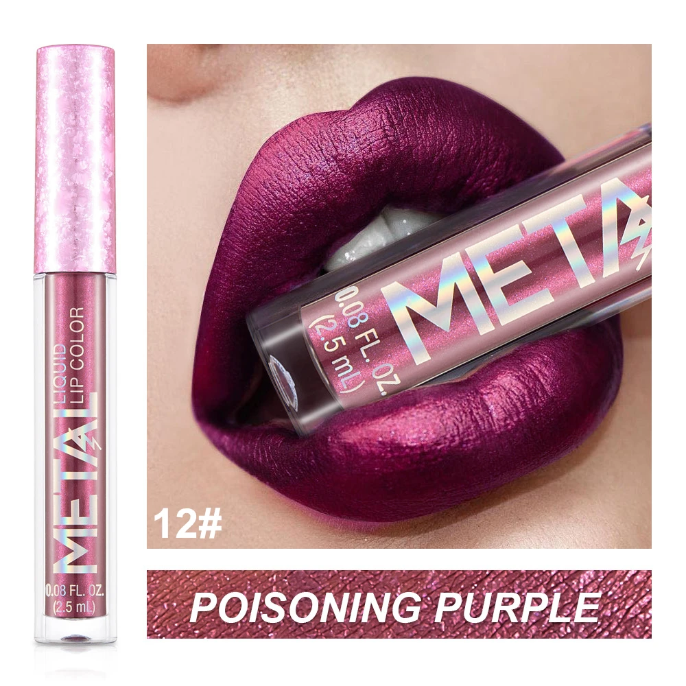 12 цветов, жидкая косметика для губ, Мерцающая металлическая помада, стойкая блестящая Помада для губ, коричневый, синий блеск для губ