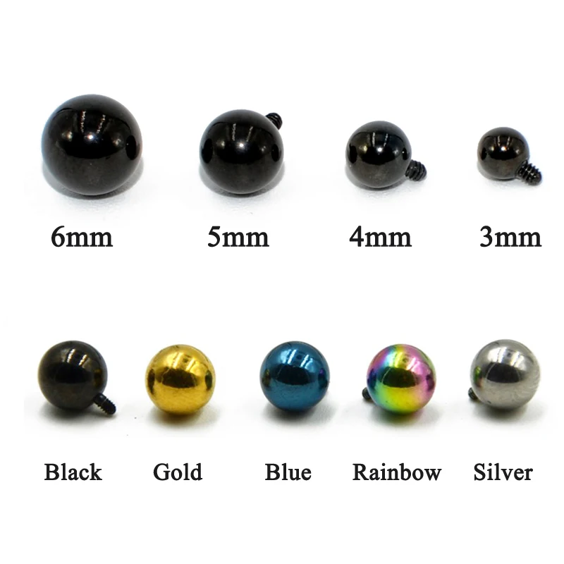 1 шт., анодированный шарик из хирургической стали с внутренней резьбой