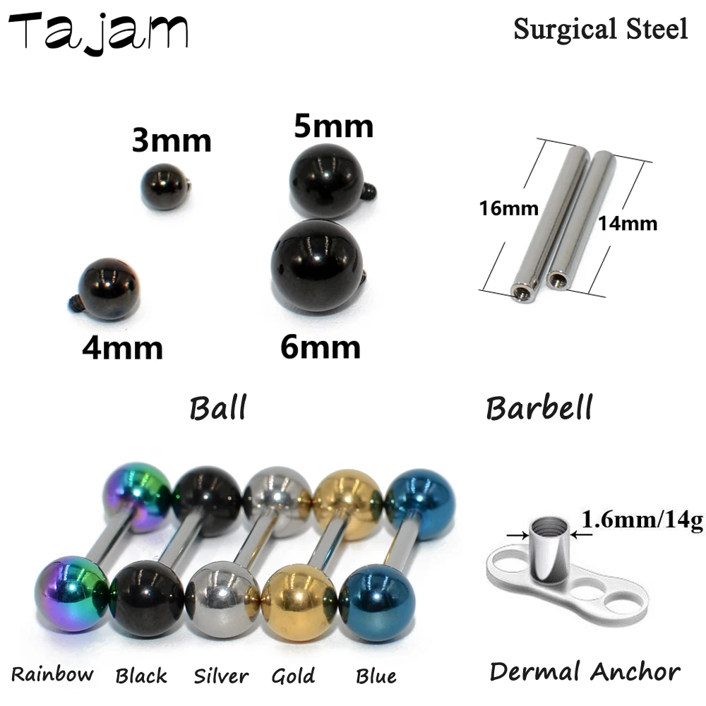 10 шт. хирургическая сталь Замена прокол аксессуары анодированный шар внутренняя Резьбовая штанга кожный база якоря пирсинг тела