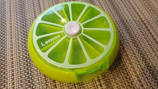 Конструкция хлипокавата, но я повелась на дизайн, так что знала чего ожидать. Таблетница приехала целая, крутится исправно. Мои таблетки поместились в отсеки, но для тех кто пьет несколько видов таблеток может быть маловата. Зато яркая и веселая. Маст хэв для тех кому за 30)))