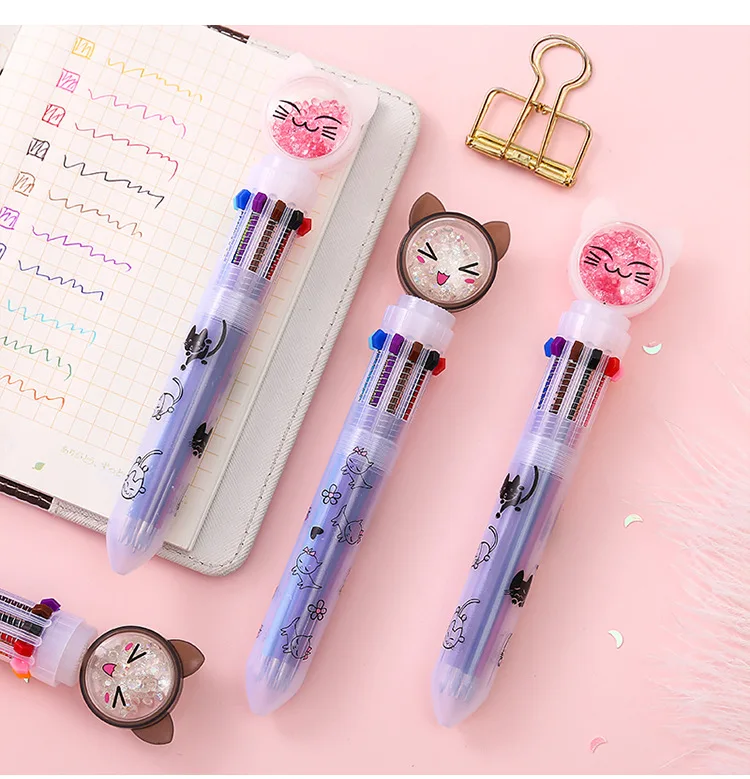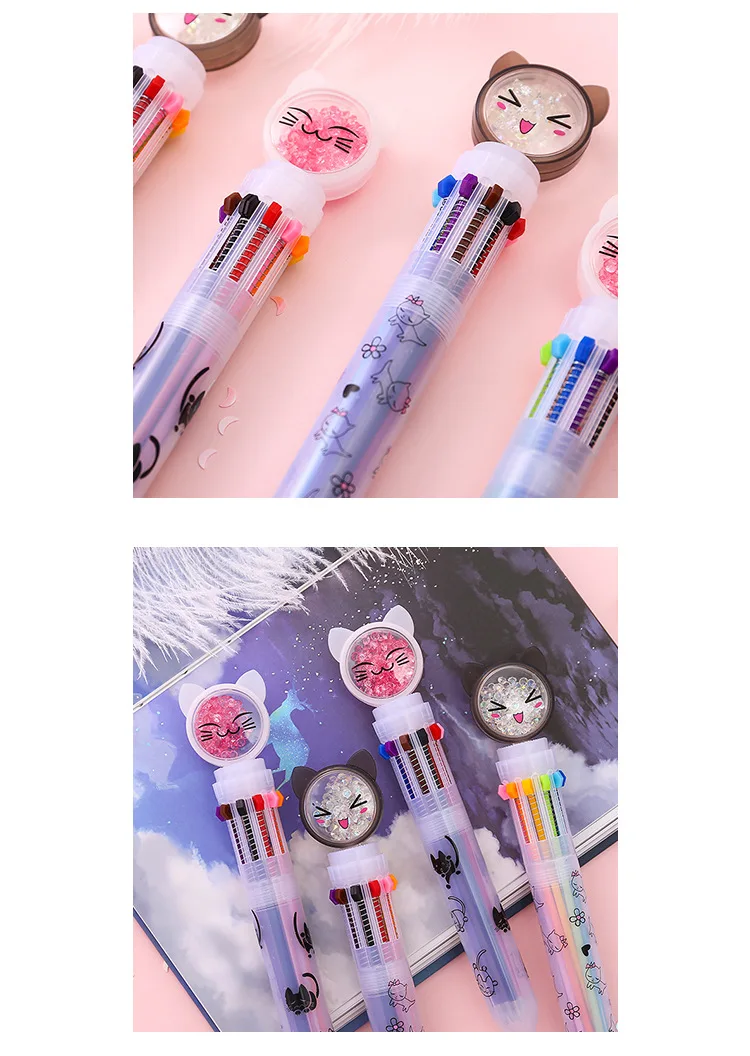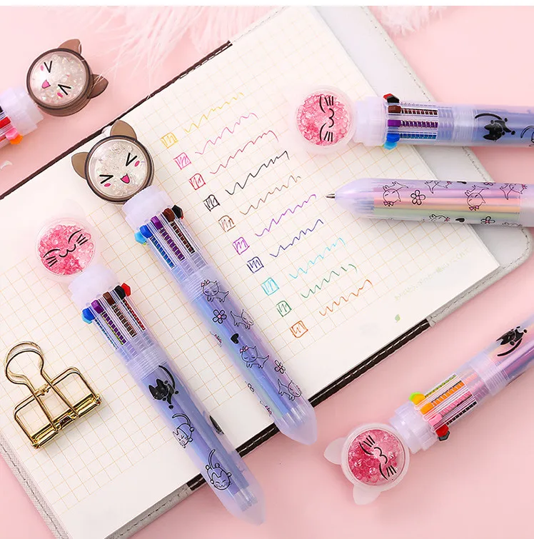 1 шт. Kawaii многоцветная 10 цветов милая Шариковая ручка с кошкой граффити ручка для детей Monocerus раскрашенный шар ручка школьные канцелярские принадлежности