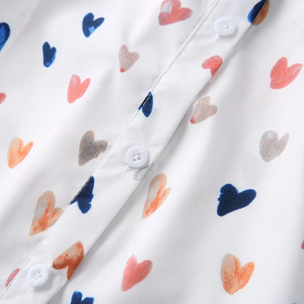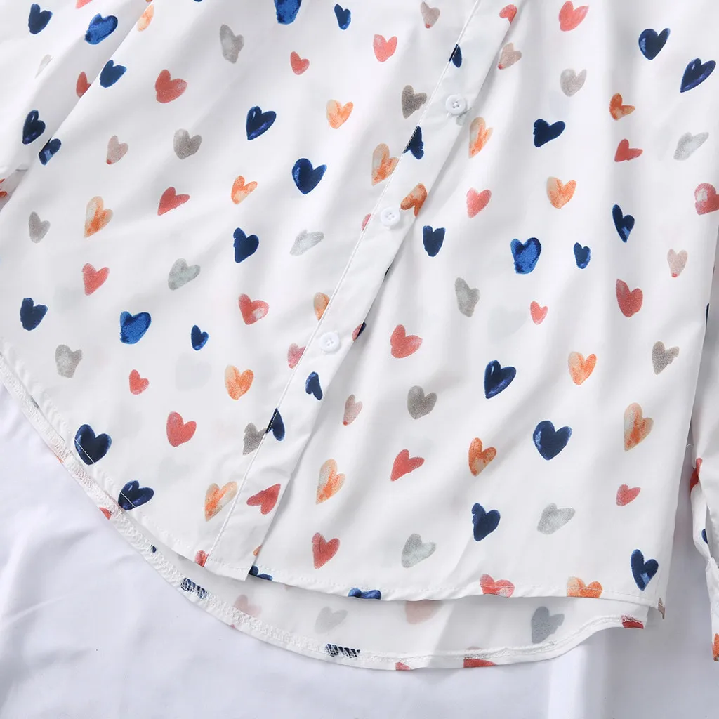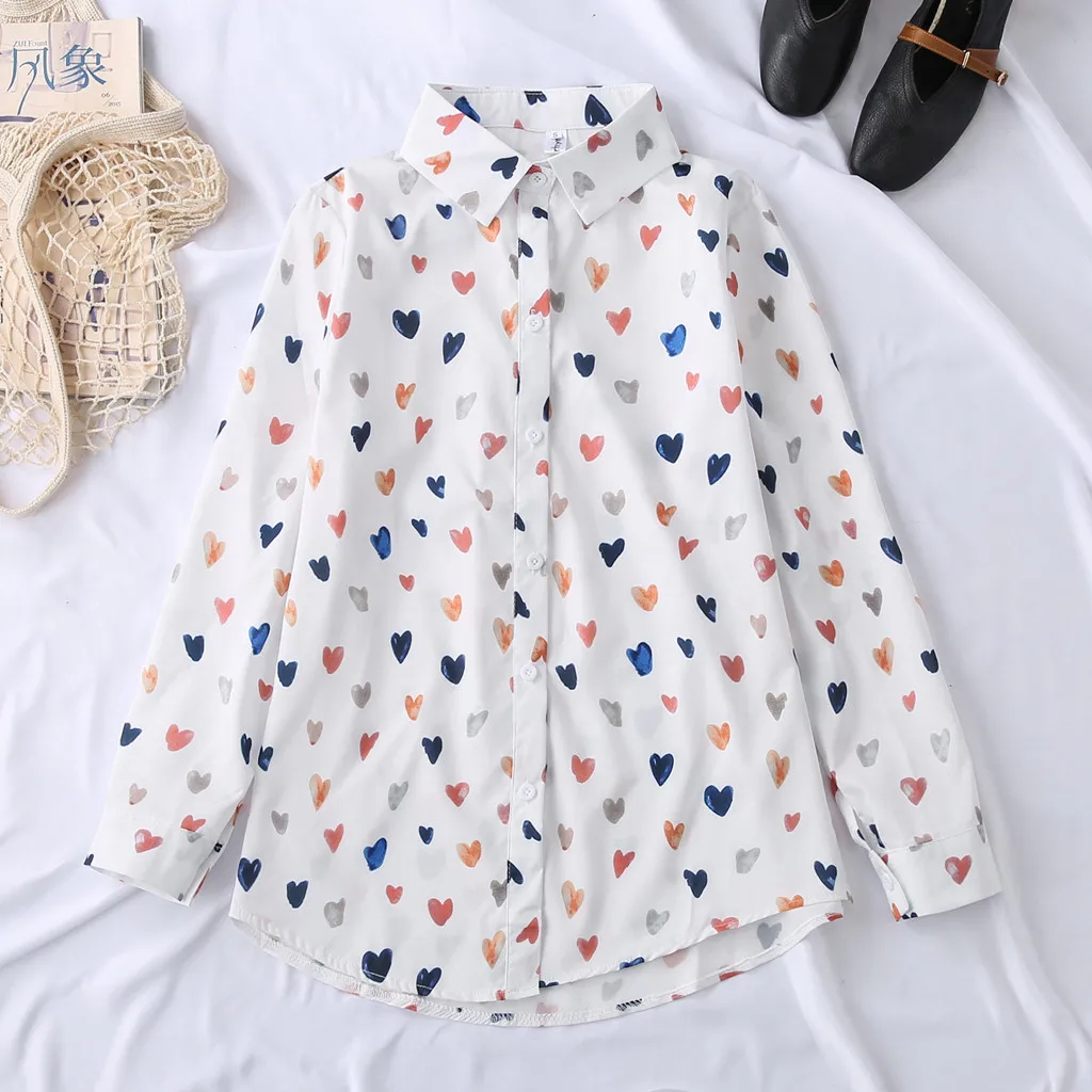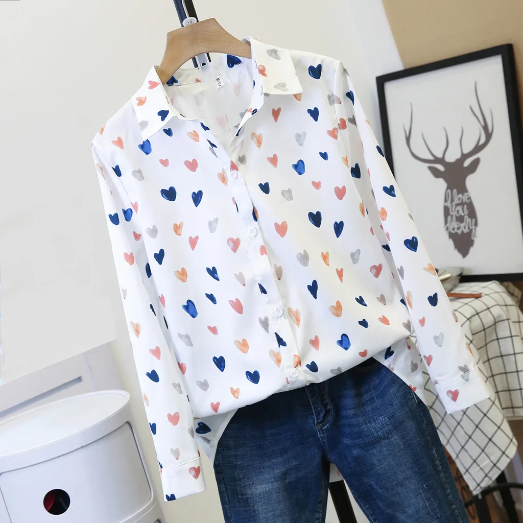 Женская блузка, Корейская рубашка с длинным рукавом и принтом в виде сердца, Повседневная Свободная блуза на пуговицах, Blusas Mujer De Moda 2019 блуза