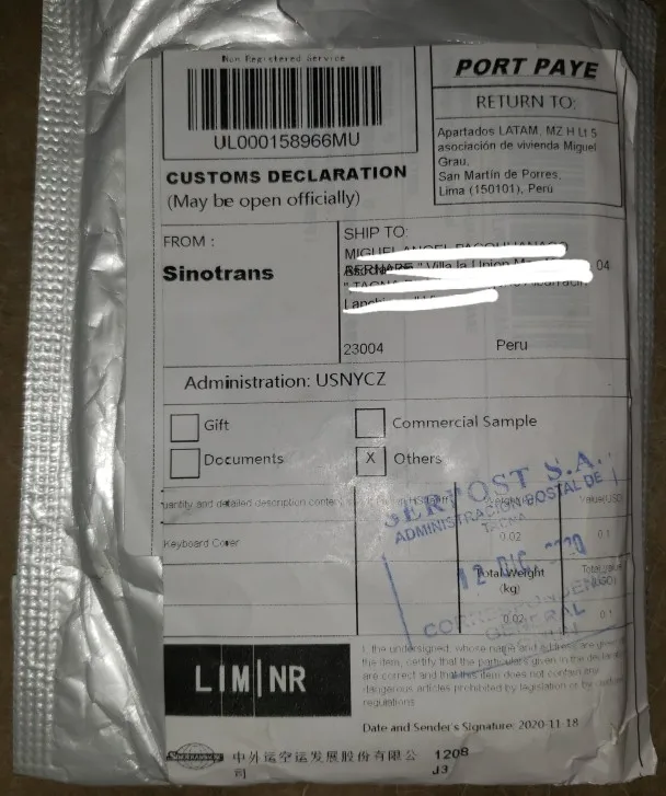 Это было более месяца с тех пор, как посылка прибыла в Испанию, пока я не получил ее в дополнение к дням, что произошло до этого. Это была вторая покупка, и первый товар прибыл через неделю.