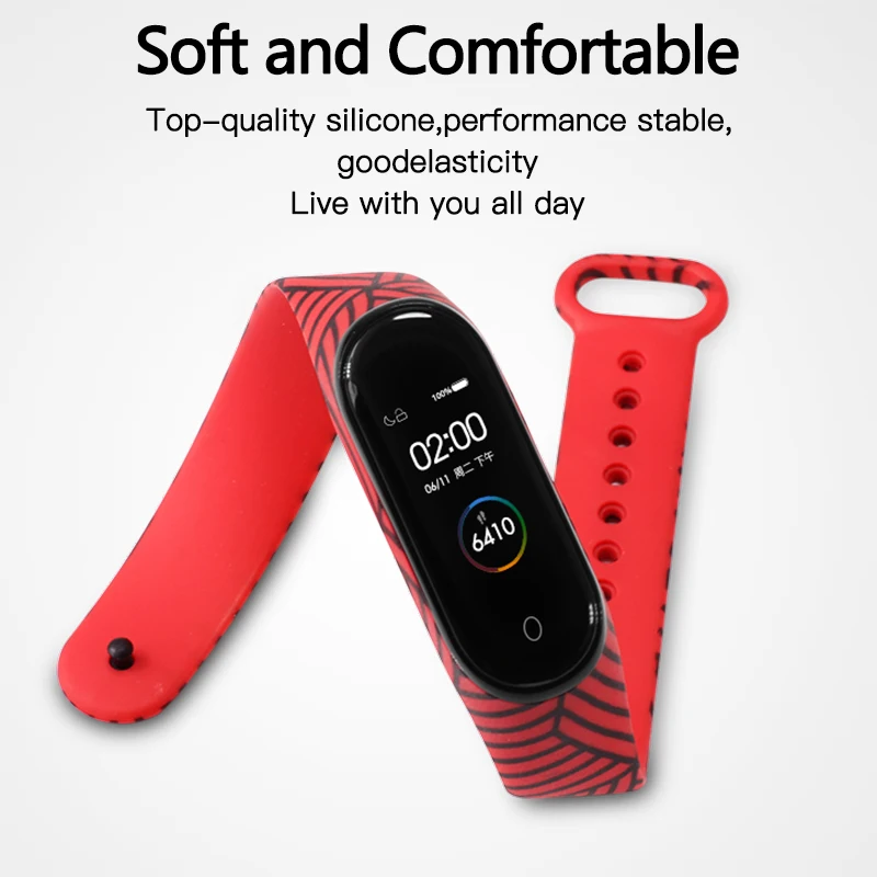 Сменный силиконовый ремешок BOORUI Miband 3, 4, 5, для браслета xiaomi Mi 3, 4, 5