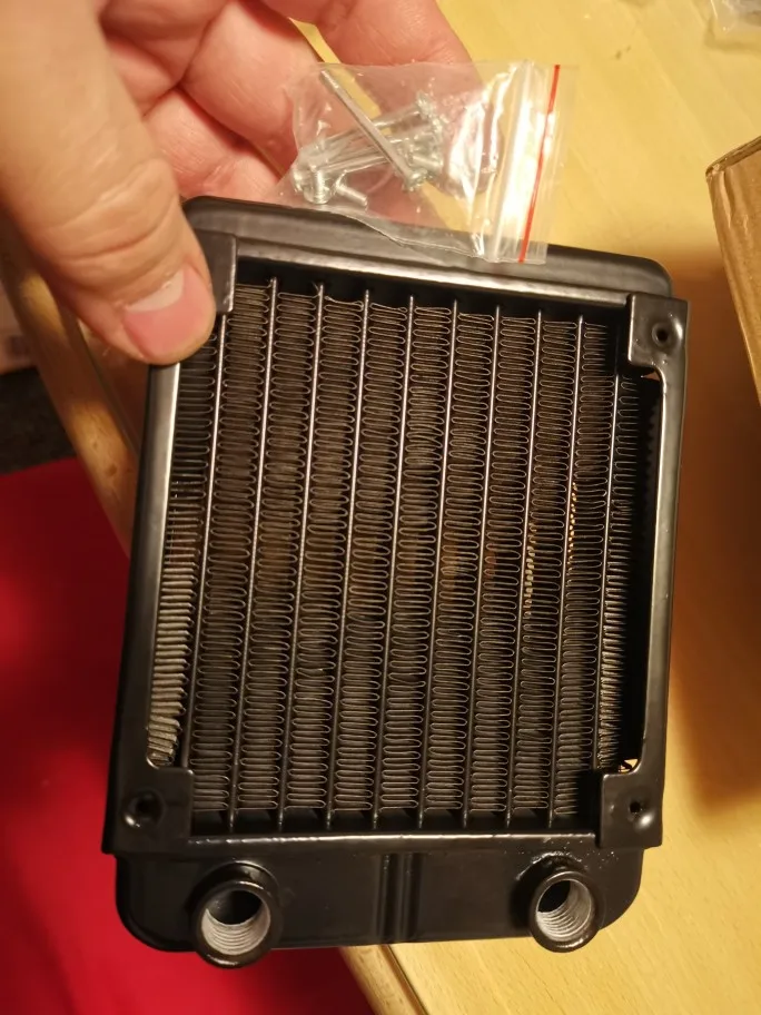 Просто установите радиатор в 2х решетку радиатора, кажется нормальным. Коробка была очень повреждена, но кажется, что радиатор в порядке. Доставка действительно быстрая