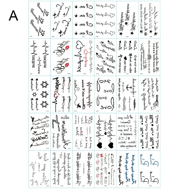 Водостойкие Временные татуировки на тело, 30 шт., поддельные татуировки, наклейки с буквами, черные, художественные символы, временные татуировки
