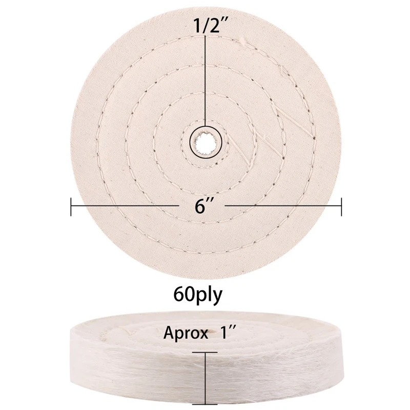 [Диаметр]: лицо 6 дюймов, отверстие для оправки 1/2 дюйма. H: 1-дюймовый белый Хлопковый полировальный круг 60 слоев, желтый обработанный полировальный круг 42 плюс.6-дюймовый полировальный круг из хлопка,