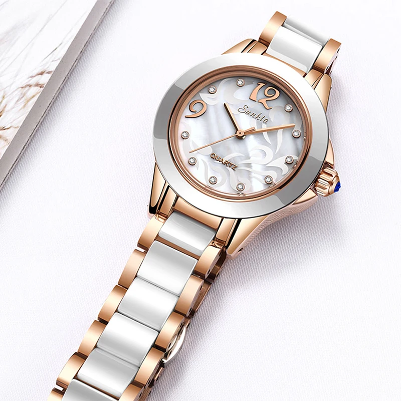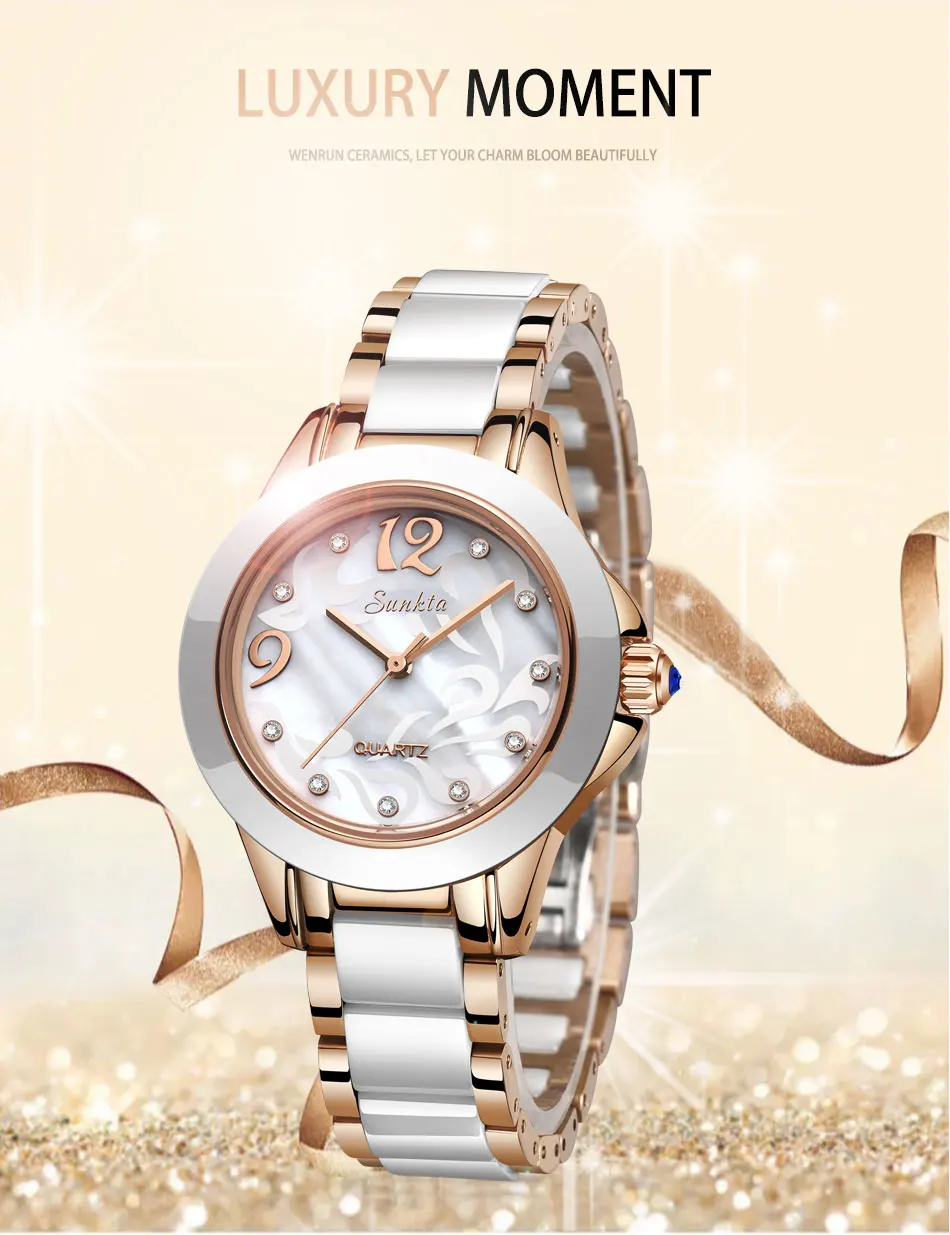 SUNKTA Роскошные хрустальные часы для женщин подарок водонепроницаемые розовые, золотые, женские наручные часы лучший бренд браслет часы Relogio Feminin Горячая