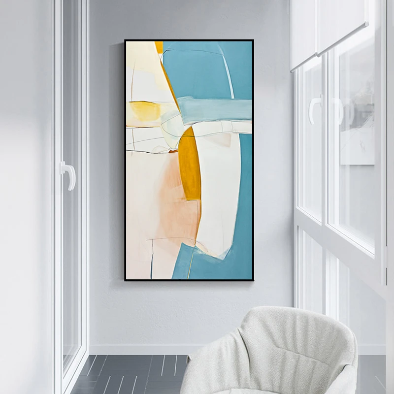 Абстрактные акварельные холщовые картины, вертикальный геометрический постер и принты, настенные художественные картины для гостиной, офиса, домашнего декора