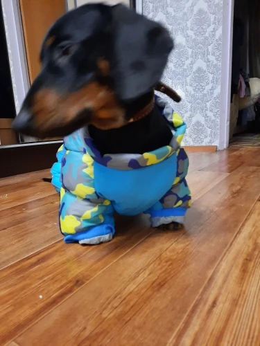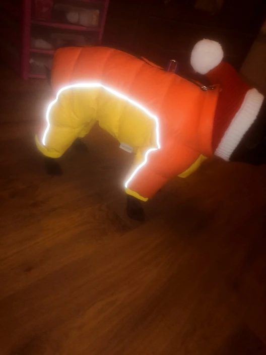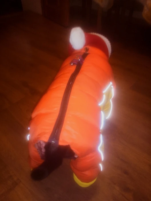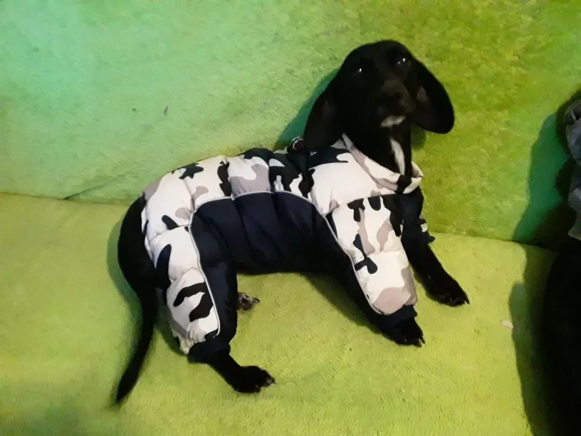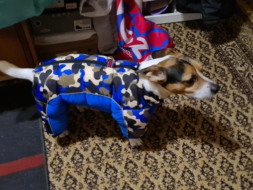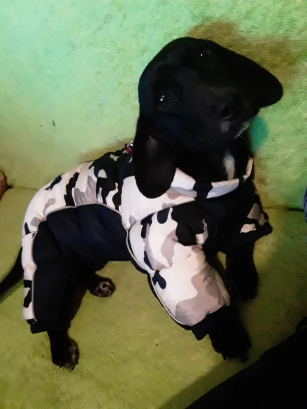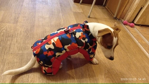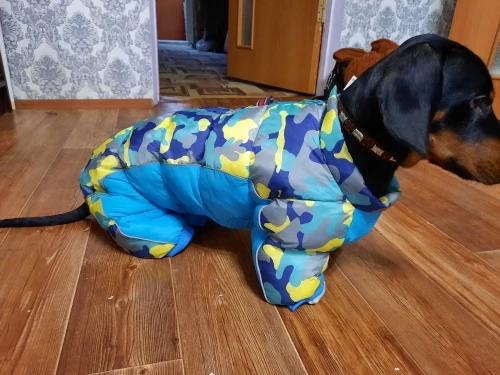 Костюм отличный, качество супер, собака свободно бегает и очень тёплый! На моего толстяка отлично сел!!!