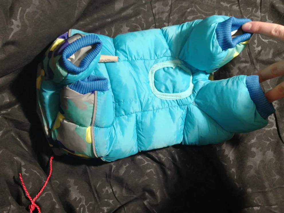 Супер пуховик!!!С размером не поогадала, выбрала сама,хотя было сложно,т.к в отзывах толком нет нужной информации!Девочки,пишите ПОРОДУ,ВЕС,ЗАМЕРЫ(ЕСЛИ ЕСТЬ),ТЕЛОСЛОЖНЕНИЕ СОБАКИ,ЩЕНОК ИЛИ ВЗРОСЛАЯ! а то вообще не понять, как выбрать размер,т.к у кого-то на щенка чихуа размер М мал, когда у меня чихуа 1год, вес 3400 кг подошел тот же размер М! как так!? В общем, у меня щенок чихуа кобель, 1 год, вес 3300-3500 кг примерно, стройненький,не дохлый, высокие лапки, размер М подошел тютелька в тютельку.По замерам былр сложно выбрать в таблице продавца,т к по ней подходит и S и М, взяла М-ку. Удобный,теплый,мягкий,непромокаемый, единсивенное,для писюна разрез нужно было делать поближе к пузе на 1-2см, т.к иногда писюн залазит обратно в пуховик, если на руки возьмешь,например. За 630₽ с купоном 11.11 пуховик отличный, в зоосферах такие от 2000₽-3000₽ тысяч! качество