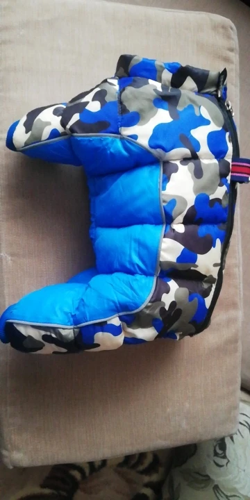 комбинезон теплый. но не хватает капюшена так как шея голая. смотрится надувным как сейчас куртки идут на людей. так в целом хорош не плохой.