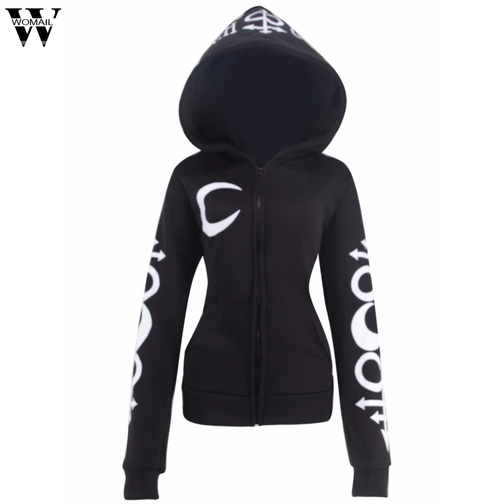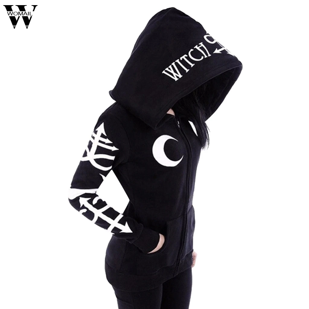 Womail толстовки с принтом свободные готический панк с длинным рукавом Осенняя Черная куртка с принтом Модный свитшот Sudadera S-XXL J30