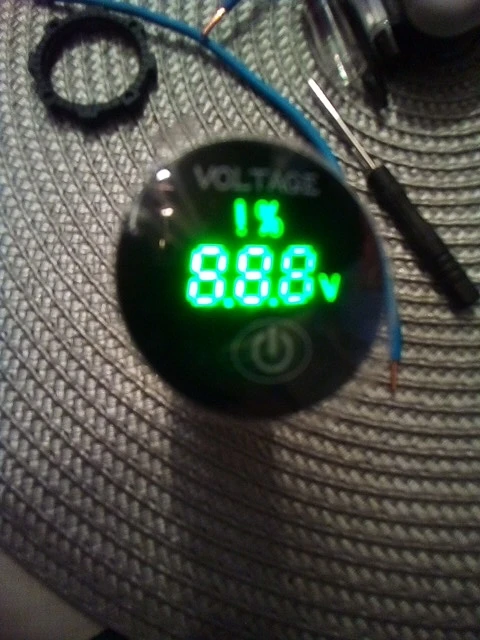 отличный вольтметр, сенсорная кнопка переключает показания с вольтметра на проценты.