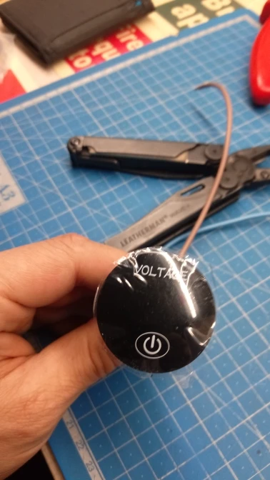 Работает нормально. Сенсорная кнопка меняет 2 режима и выключает если держать 3сек. Но врет до 0.2 вольта. До 13. 5 показывает чётко, свыше обманывает немного. При 13.9 показывает 14.1. Возможно виноват не он а обд2. Но у них вот такое расхождение.